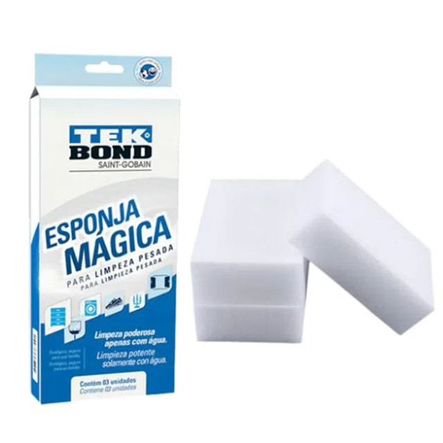 A Esponja Mágica Tekbond é indicada para a remoção de manchas e sujeiras em diversas superfícies. Para isso, utiliza somente água, dispensando o uso de produtos de limpeza. Ainda tem a vantagem de não deixar resíduos nem agredir o meio ambiente.