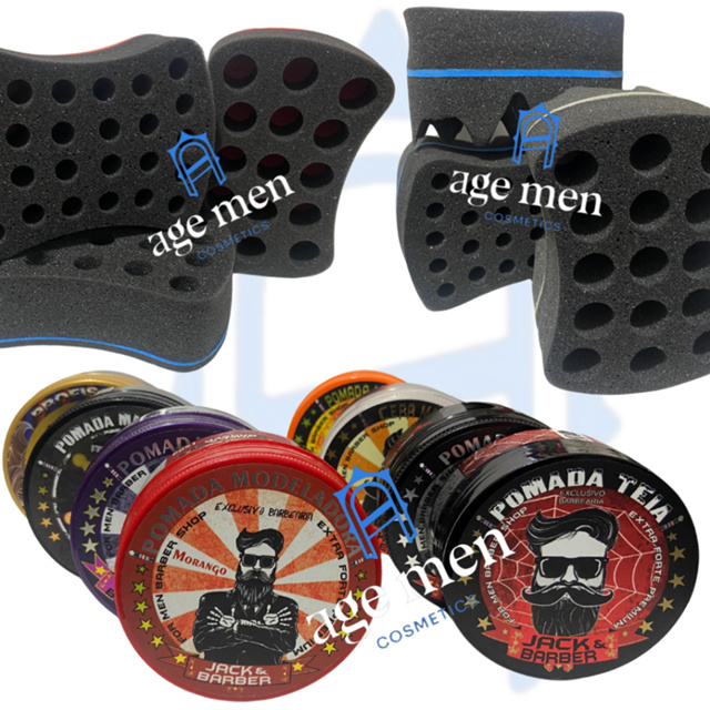 Esponja Nudred + Pasta Cera Modeladora Jack Barber Dupla ou Tradicional para cabelo enrolar