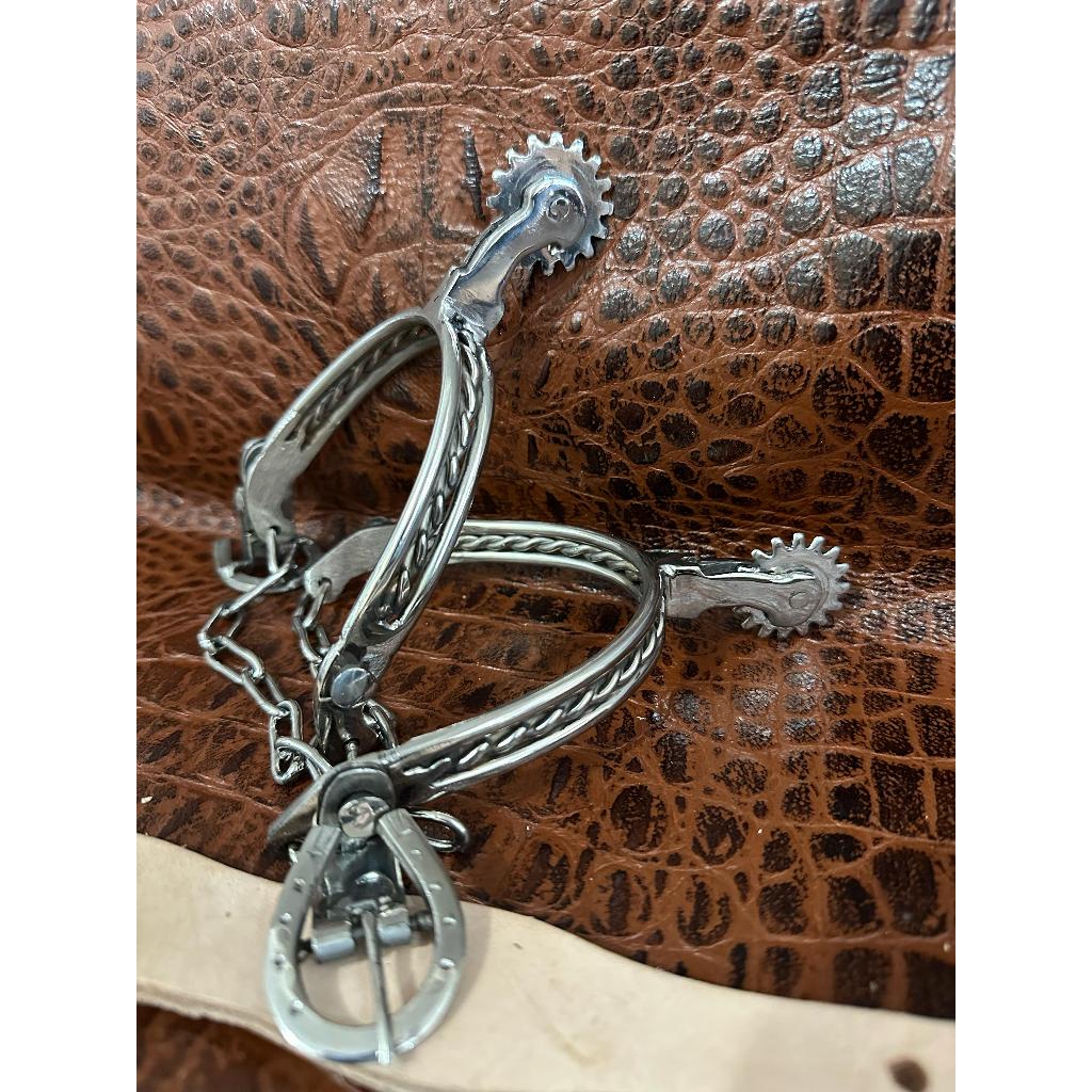espora quarto de milha aço inox de alta qualidade + correia de couro legítimo promoção da fábrica