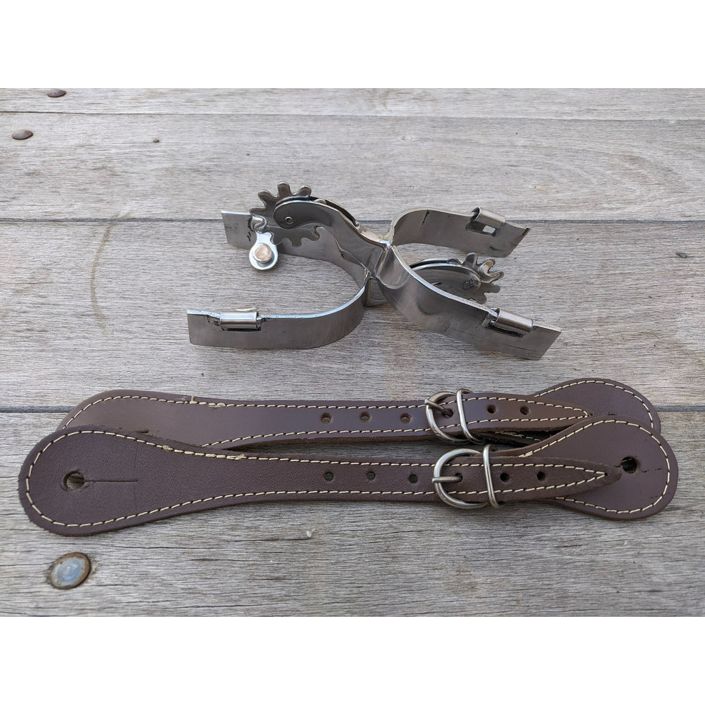 Espora Quarto De Milha Inox Country Cavalo Doma + Correia