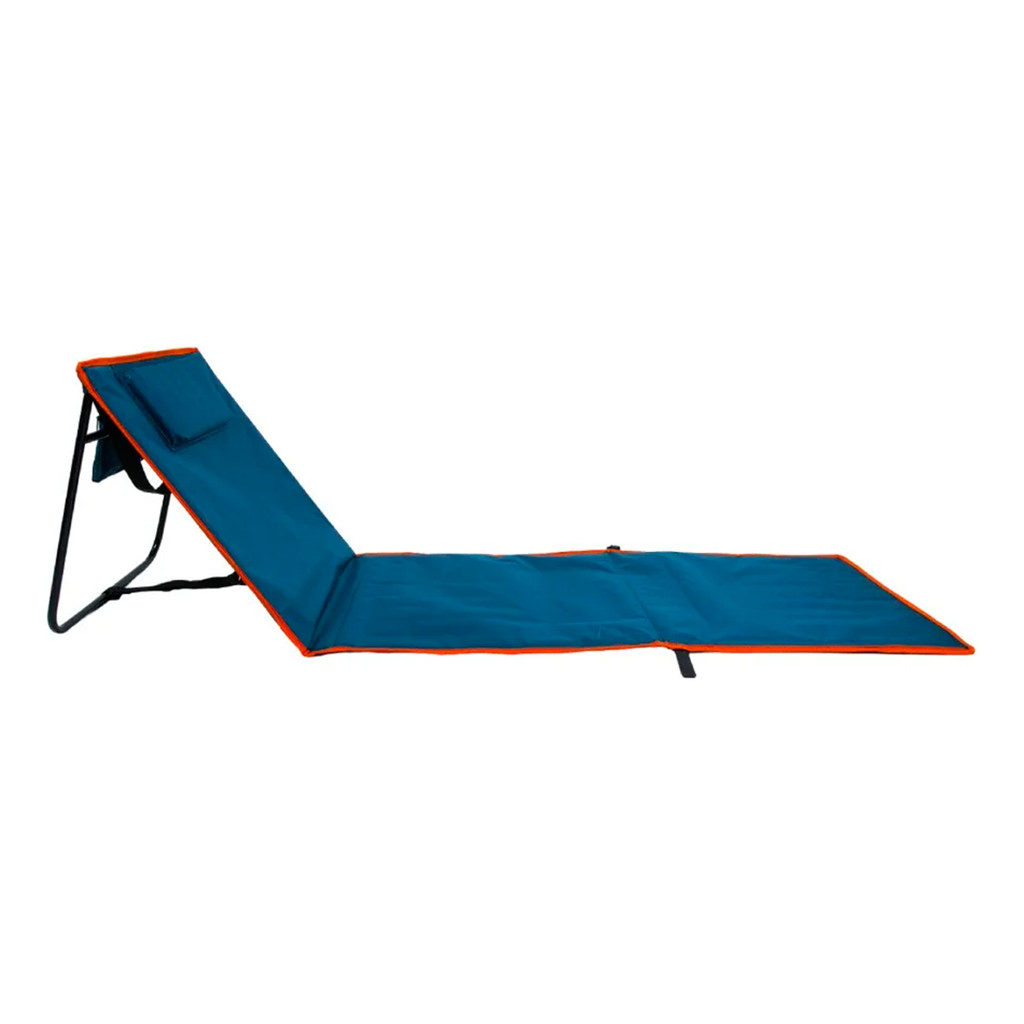 Espreguiçadeira e Esteira Portátil de Praia com Almofada Alça e Bolso Azul Escuro - NAUTIKA