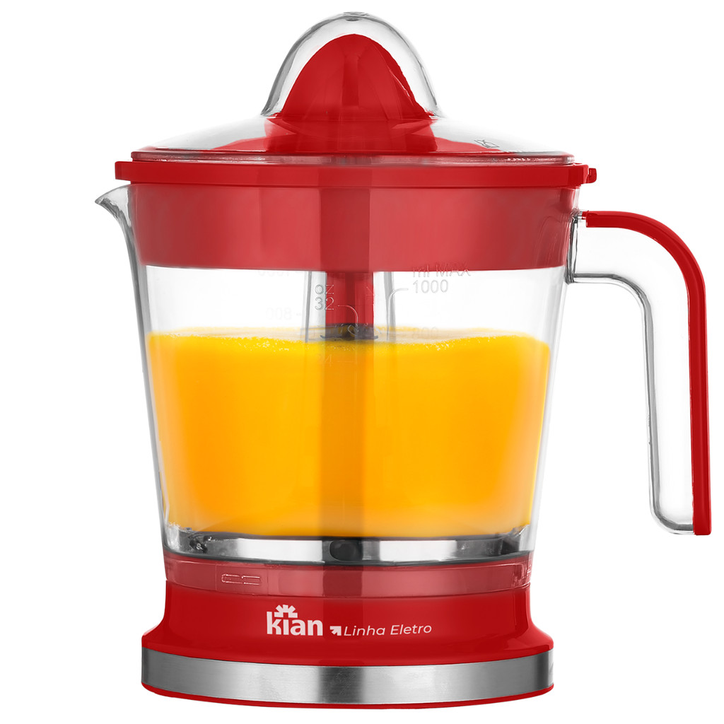 Espremedor Turbo 1,2L ESP-100 - Kian Transforme a rotina da sua cozinha com o Espremedor Turbo Kian ESP-100. Compacto, eficiente e moderno, ele garante sucos frescos de forma prática e rápida. Seu sistema de acionamento automático com dupla rotação facilita a extração: basta pressionar a fruta que o espremedor faz todo o trabalho, sem necessidade de botões. Benefícios Capacidade de 1,2 litros, ideal para armazenar e servir Dupla rotação automática que otimiza a extração Peneira ajustável para escolher suco com ou sem polpa Dois cones para frutas grandes e pequenas Trava de segurança e pés antiderrapantes que garantem estabilidade Tampa de proteção e jarra graduada para maior praticidade Design moderno disponível em preto ou vermelho Especificações Técnicas: Marca: Kian Modelo: ESP-100 Capacidade: 1,2 litros Potência: 50W Tensão: 127V ou 220V (Escolher voltagem correspondente) Cores: Preto ou Vermelho Dimensões: 20,4 cm (C) x 15,8 cm (L) x 22,2 cm (A) Peso: 770g Itens Inclusos 1 Espremedor Turbo Kian ESP-100 2 cones para extração (frutas grandes e pequenas) 1 Tampa para armazenamento 1 Jarra graduada Manual de instruções
