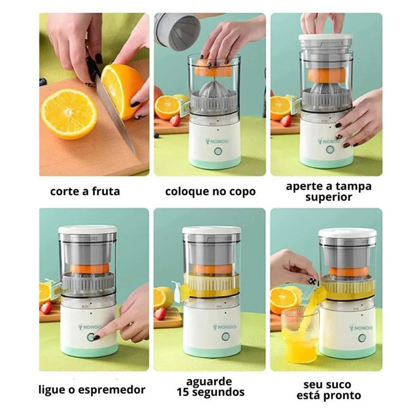 Espremedor De Laranja Frutas Elétrico Portátil Bivolt Extrator Recarregável USB