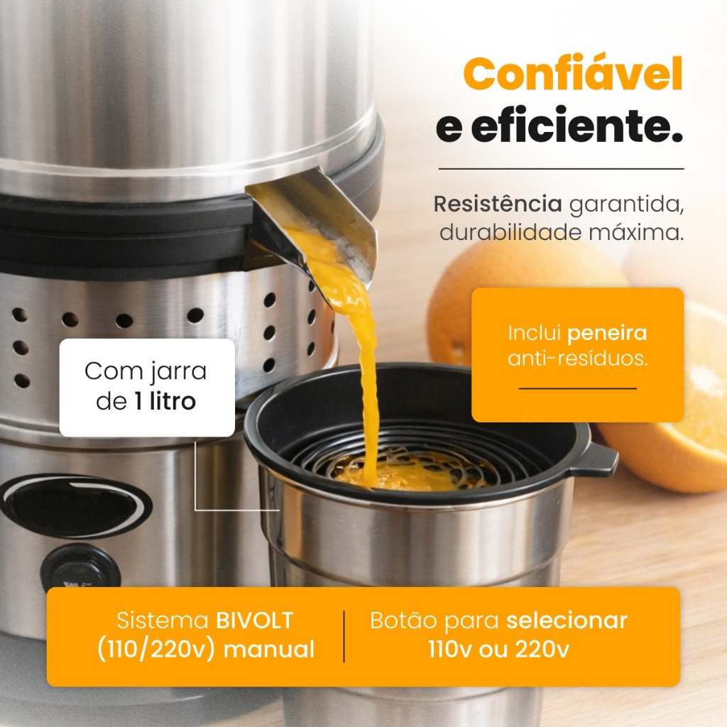 Espremedor Suco de Laranja Elétrico 500w Extrator Industrial Jarra 1 Litro Inox