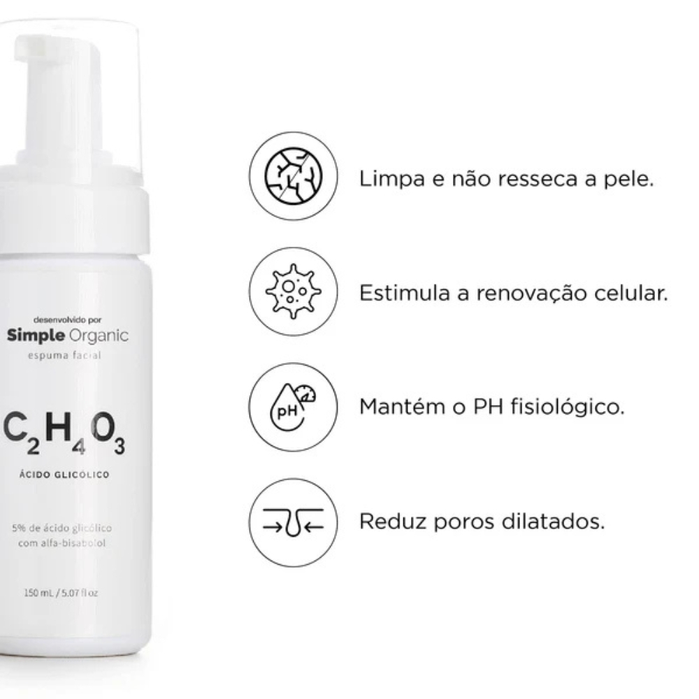 Espuma de Limpeza Facial Ácido Glicólico 150ml Simple Organic