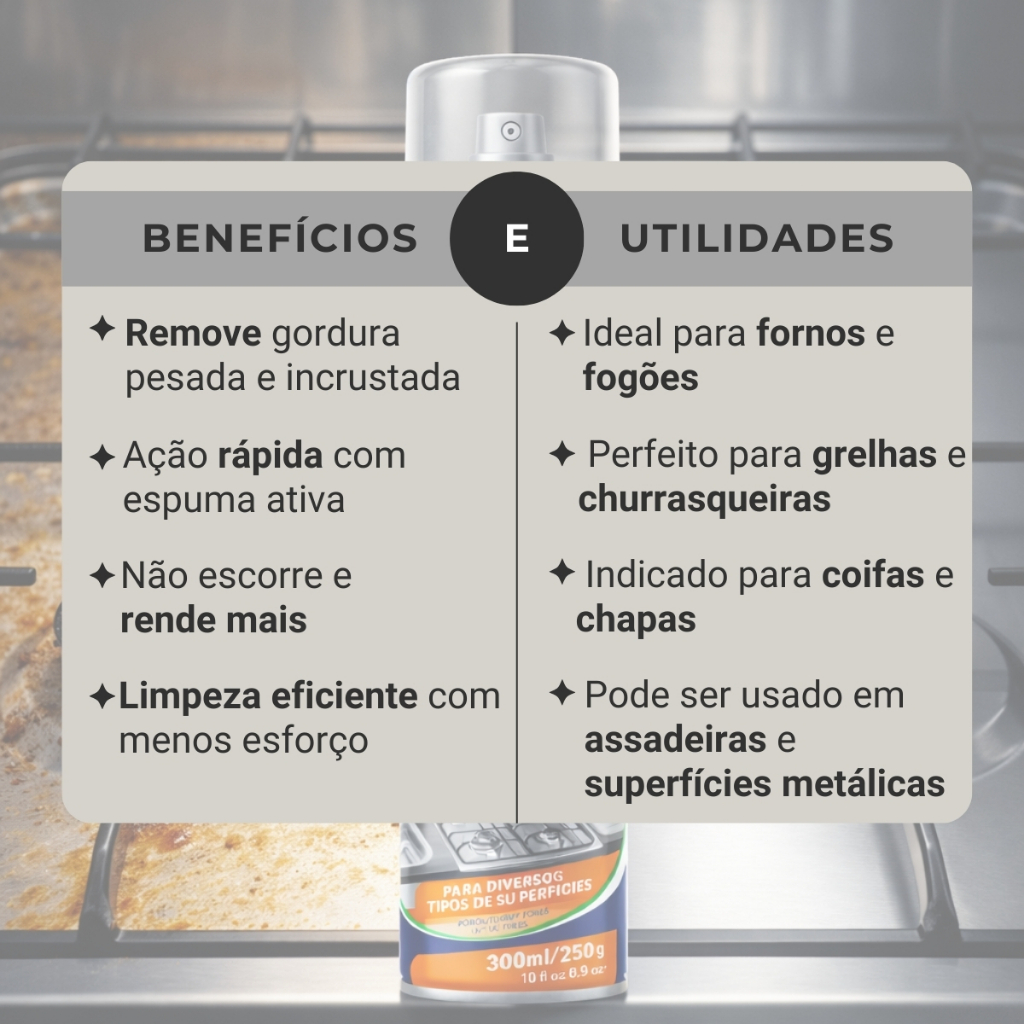 Espuma Desengordurante Limpa Gordura Pesada Fogão Forno Cozinha - 300ml