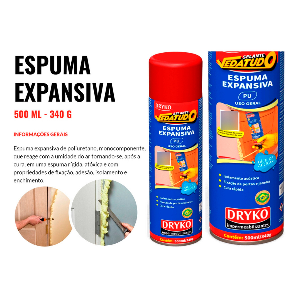 Espuma Expansiva Multiuso 500ml Veda Tudo Dryko