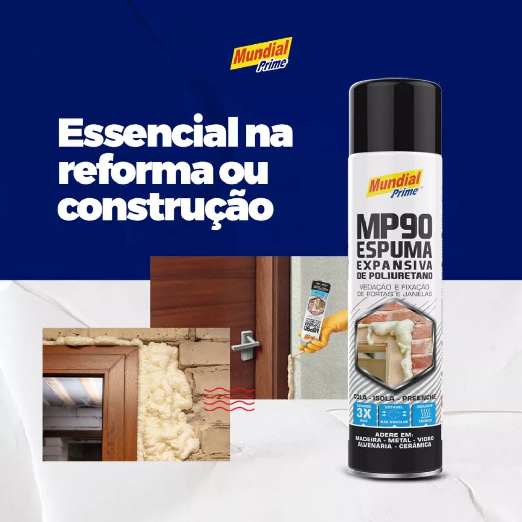 ESPUMA EXPANSIVA é uma espuma de poliuretano expansível monocomponente e isenta de CFC. De uso Geral, indicada para fixação, vedação, preenchimento e isolamento térmico e acústico. CIBRA ESPUMA EXPANSIVA possui ótima aderência em concreto, reboco, alvenaria, madeira, cerâmica, entre outros materiais e resiste a variações de temperatura de -30ºC até +80ºC. PRINCIPAIS APLICAÇÕES Fixação e isolamento de juntas ao redor de janelas, batentes de portas, passagem de tubulações, sistemas de ar condicionado, equipamentos elétricos etc. LIMITAÇÕES Não adere em teflon, silicone, polietileno e polipropileno. Para aplicações em peças metálicas recomenda-se o uso de fundo anticorrosivo. VANTAGENS Fácil aplicação Cura rápida Alta taxa de expansão Bom isolante para altas temperaturas Amortecimento efetivo contra o ruído Não provoca danos na camada de ozônio por causa do propelente Adere em diferentes superfícies Alta resistência ao intemperismo Aceita pintura