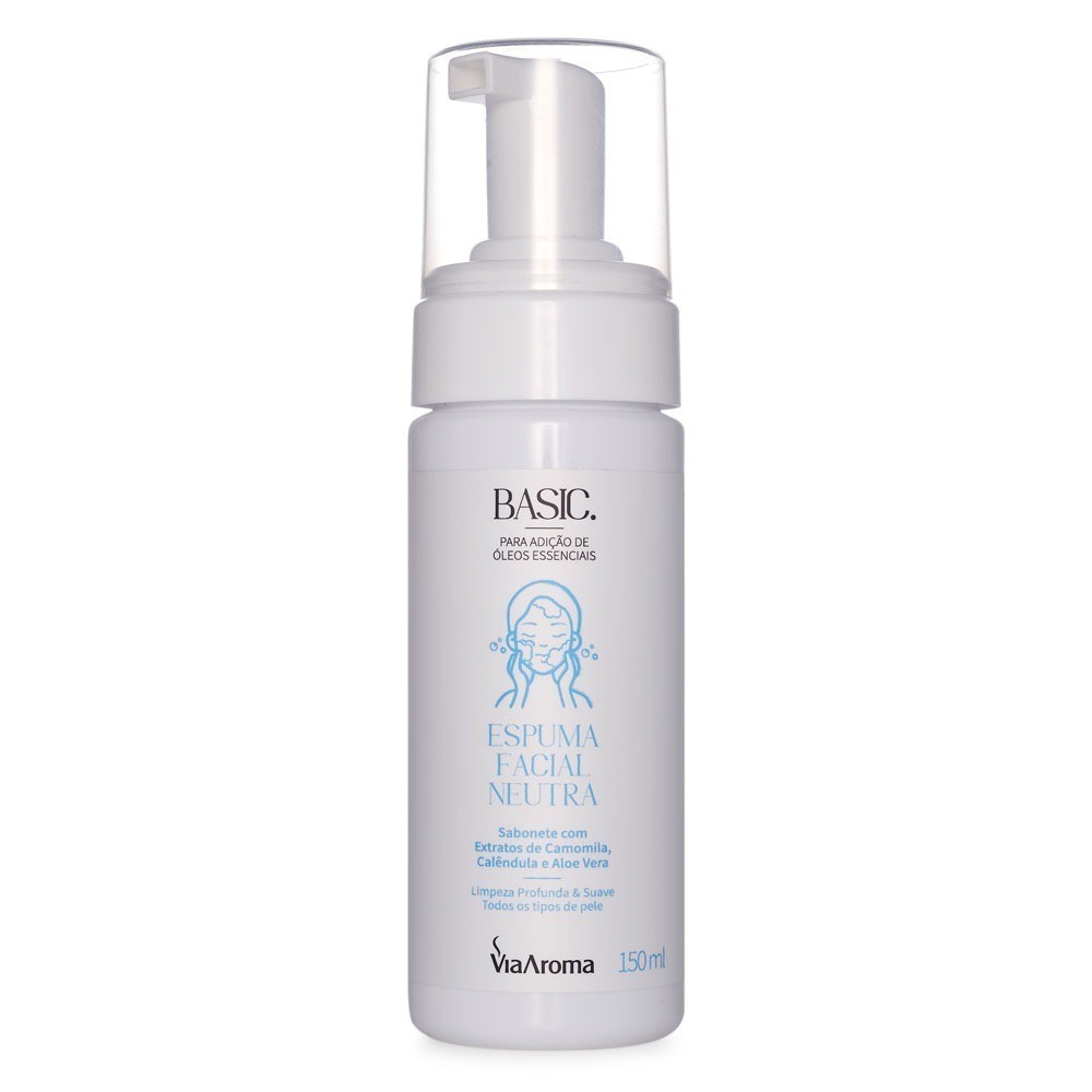 Seja Bem-Vindo à loja Oficial Via Aroma! A Espuma Facial Neutra Basic limpa, hidrata e protege todas as peles. É um sabonete neutro e vegano de uso diário, ideal para usar puro, ou adicionando óleos essenciais de sua preferência. Deixa sua pele livre de impurezas, com ativos naturais e suaves. Fórmula vegana e sem testes em animais; Sabonete de uso diário para limpeza do rosto; Com extratos de camomila, calêndula e aloe vera; Ação suavizante para todas as peles; Protege e cuida da barreira da pele.