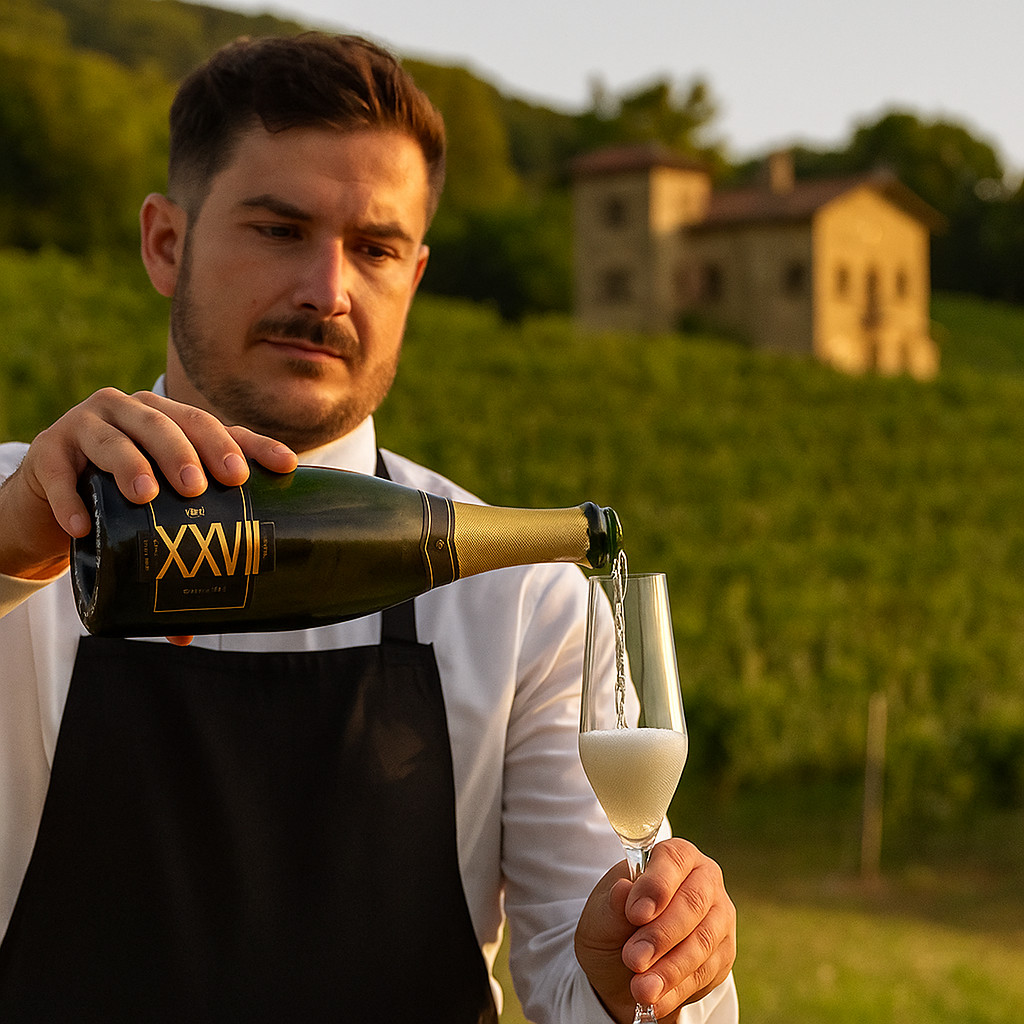 Coleção: Terroir XXVII Terroir: Indicação de Procedência Altos Montes – Flores da Cunha, RS Tipo: Vinho Fino Branco Espumante Natural Brut – Método Tradicional Castas: 60% Chardonnay, 20% Trebbiano Romagnolo, 20% Pinot Noir Graduação Alcoólica: 12,5% Maturação: Maturado por 180 dias sobre as leveduras. Processo de Elaboração: Colheita manual das uvas; Refrigeração das uvas por 24 horas em câmara fria; Seleção criteriosa dos cachos e bagas; Vinificação por gravidade, sem bombeamento; Prensagem delicada; Limpeza do mosto a frio de forma estática; Fermentação com leveduras selecionadas a 13°C; Clarificação e filtração do vinho base; Estabilização tartárica a frio; Segunda fermentação na garrafa (tomada de espuma) a 14°C; Maturação sobre as borras por 180 dias; Remuagem em giropallet; Degorgement com congelamento do bico; Adição do licor de expedição; Fechamento com rolha de cortiça e gaiola; Rotulagem e embalagem final. Características Organolépticas: Cor: Amarelo com reflexos esverdeados e perlage fino e persistente. Aroma: Frutado, com destaque para notas de pera e frutas cítricas. Paladar: Equilibrado, com boa estrutura e acidez refrescante. Temperatura de Serviço: 4 a 6°C Harmonização: Ideal com aperitivos, pratos leves, queijos suaves e culinária oriental.