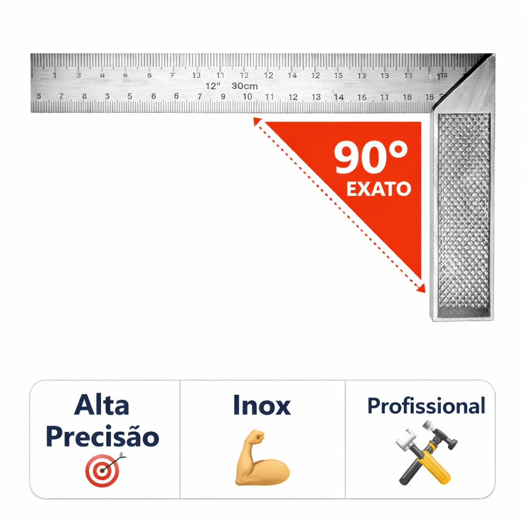 Esquadro Aço Inox 12” 30cm Profissional Alta Precisão