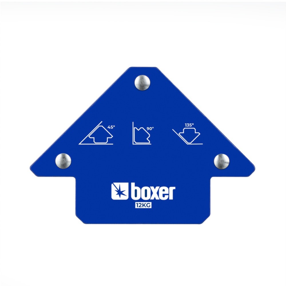 Produto: Esquadro magnético para solda capacidade 12 Kg Marca: Boxer Descrição: O Esquadro magnético para solda capacidade 12 Kg da Boxer oferece precisão em posicionamentos dos ângulos de trabalho, sendo eles: 135°, 45° e 90°, além de proporcionar economia de tempo e esforço nos serviços de soldagem em vários tipos de metais. Aplicação: O esquadro magnético Boxer é ideal para fazer a união de duas peças por meio da soldagem, fixando cantos de materiais de até 12 Kg. Recomendações: O produto deve ser removido o mais rápido possível após o uso, por ser um produto altamente sensível ao calor extremo. Especificações: Capacidade: 12 Kg "ngulos de trabalho: 135°, 45°, 90°. Peso: 0.33 Kg