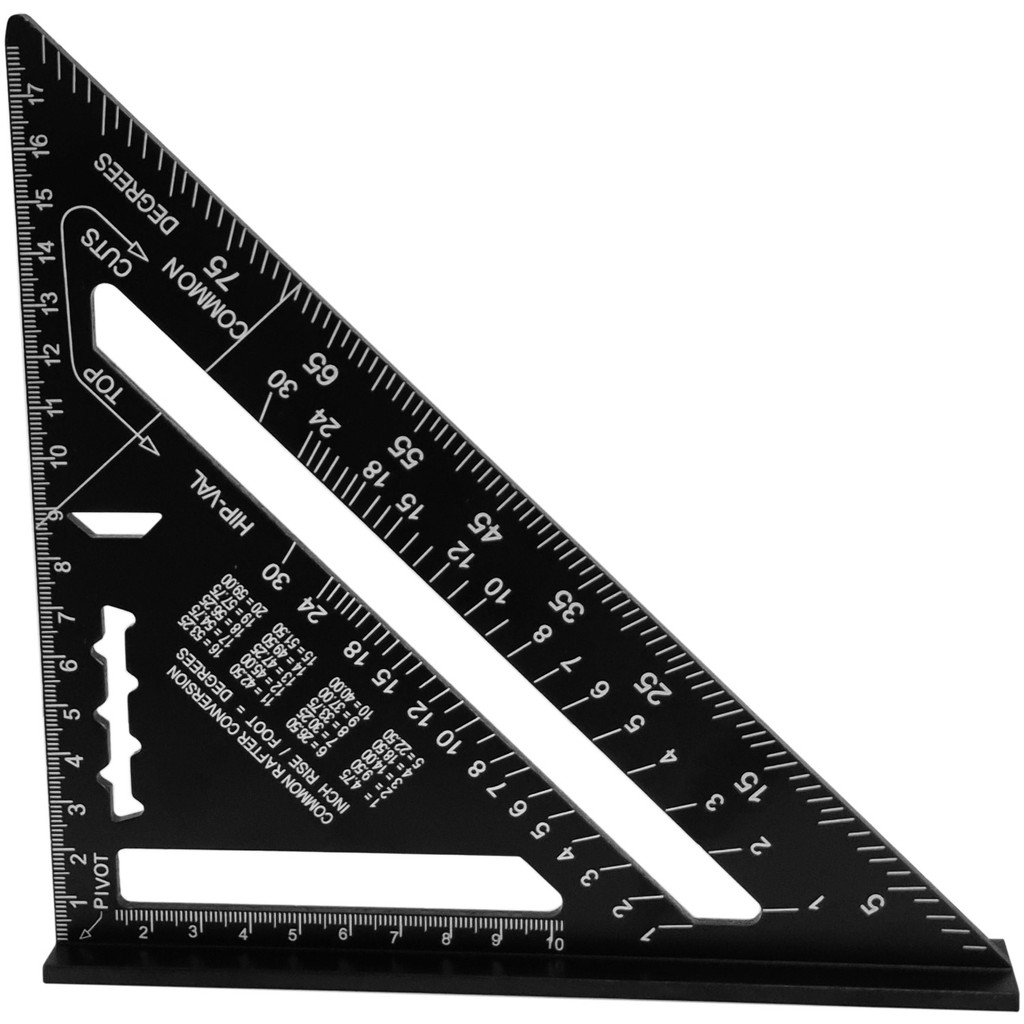 Esquadro Rápido Métrico 5 em 1 Tipo Swanson 7 Pol. Triangulo Esquadro Rápido Preto Tipo Swanson Triangulo Speed Square 7. Pode ser usado como um transferidor, mitra, ou enquadramento quadrado. - Marca: Dremax - Referência: ESQ005 - Material: Liga de Alumínio - Medidas em Escala Métrica (mm) - Corpo em alumínio preto fosco anodizado - Bordas usinadas em CNC para maior precisão e durabilidade - Marcação em ambos os lados com pintura de alta qualidade (não é baixo relevo0 - 5 funções: esquadro, esquadro-mitre, transferidor, guia de serra, e tracejador de linhas - Ideal para todos os projetos de construção e remodelação - Super resistente construído em alumínio fundido - Indicado para tracejar linhas e guia de serras, auxilia na medição e marcação de ângulos de estruturas para confecção de arremates, entre outros - Ferramenta de carpinteiro para o enquadramento, coberturas - Tamanho: Aprox. 18 cm x 18 cm x 25 cm (7.09 " x 7.09 " x 9.84") - Para fazer ângulos precisos, um de corte, desenho, apresenta medições predefinidas - Garantia: 90 dias
