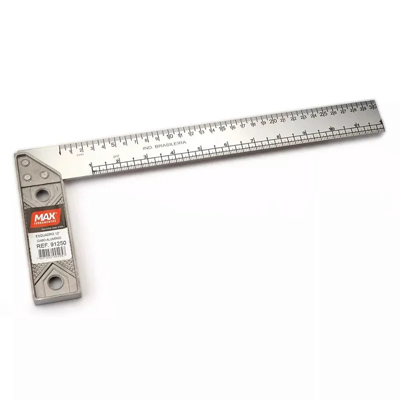ESQUADRO 12" RÉGUA COM NUMEROS GRAVADOS A LASER E EM AÇO TEMPERADO. CABO EM ALUMINIO DE ALTA RESISTENCIA. ESQUADRO AFERIDO PARA USO PROFISSIONAL.