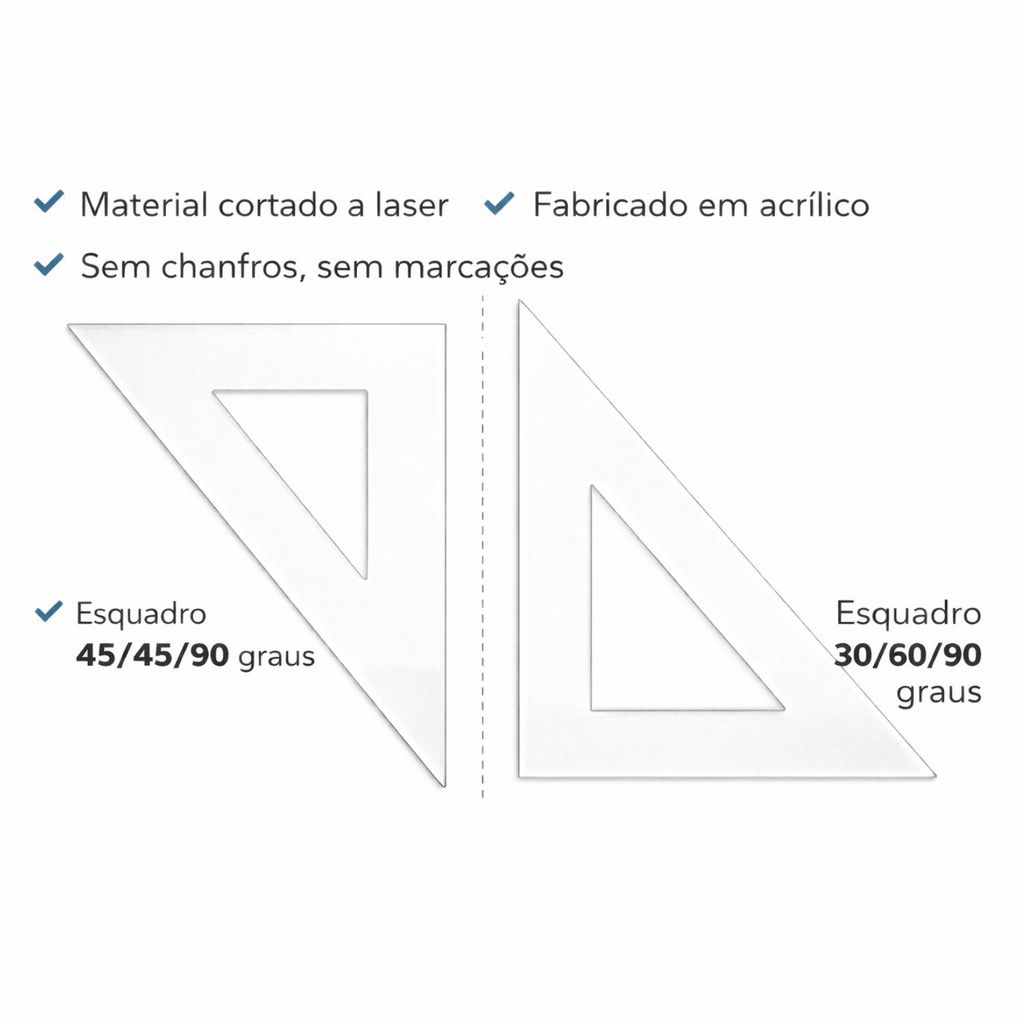 Esquadros Acrílico Profissional 45/30 Desenho Técnico 28 cm