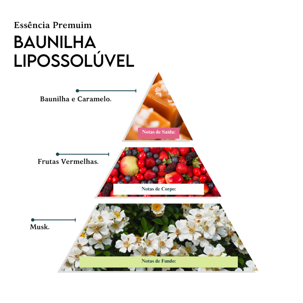 Essência Baunilha Deliciosamente Aconchegante e Envolvente Uma fragrância da família Oriental Gourmand que une a doçura suave e acolhedora da baunilha com o calor reconfortante do caramelo e um toque vibrante de frutas vermelhas. A abertura traz a doçura cremosa da baunilha combinada com o caramelo, criando uma sensação imediata de conforto e prazer. No coração, as frutas vermelhas oferecem frescor e vivacidade, equilibrando a composição. A base de musk proporciona um acabamento suave, sensual e duradouro, ideal para ambientes que convidam ao aconchego. Família Olfativa: Oriental Gourmand Notas Olfativas: Saída: Baunilha e Caramelo Corpo: Frutas Vermelhas Fundo: Musk Uso Recomendado: Velas perfumadas Sabonetes líquidos (transparentes ou perolados) Difusores e sprays de ambiente Destaques: Qualidade premium: sem ftalatos, sem parabenos, não testada em animais Frascos âmbar para conservação do aroma Dosagem recomendada: 10g a 15g para cada 100g de cera Cuidados: Armazenar em local seco, fresco e longe da luz Realizar testes prévios, principalmente em cold process Usar luvas; evitar contato com olhos e pele Manter fora do alcance de crianças e animais Especificações Técnicas Ponto de Fulgor: 137°C Densidade: 1,1039 g/cm³ Importante: Essências com notas adocicadas podem oxidar e alterar a cor do produto final. Para evitar, utilize corantes adequados e mantenha a embalagem protegida da luz. Realize testes prévios para assegurar o desempenho esperado na aplicação desejada. Não aceitamos devoluções de essências com lacre violado Aviso Importante: A Loja Tudo Para Velas é exclusivamente uma revendedora de matérias-primas e insumos para fabricação artesanal. Não nos responsabilizamos por resultados insatisfatórios decorrentes de uso inadequado, manipulação incorreta ou falta de conhecimento técnico. É de responsabilidade do cliente buscar informações detalhadas sobre os materiais antes da compra, assim como realizar testes prévios em pequena escala antes de produções em maior volume. Reforçamos que cada material pode apresentar comportamentos diferentes de acordo com a técnica utilizada, as condições do ambiente e os demais ingredientes da formulação. O sucesso na aplicação depende diretamente da experiência, testes e práticas adotadas por cada cliente. Por que Comprar na Tudo Para Velas? Confiança e Qualidade: Produtos desenvolvidos com rigor para oferecer o melhor para seus cuidados pessoais. Entrega Rápida: Receba seus produtos com agilidade, sem comprometer a qualidade. Atendimento Especializado: Nossa equipe está disponível para esclarecer dúvidas e fornecer suporte completo. Preço Competitivo: Excelência e qualidade com preços justos para você. A Tudo Para Velas é a escolha certa para quem busca qualidade e inspiração! Adicione ao carrinho agora e comece a criar com materiais que fazem a diferença! Observações Importantes: Realize sempre testes para assegurar o desempenho esperado na aplicação desejada. Não nos responsabilizamos por uso inadequado ou fora das orientações fornecidas. O produto faz parte do grupo Hemera Beauty Ltda, que inclui Tudo Para Velas Ind Com Imp e Exp LTDA e Casinha das Essências LTDA. As especificações podem variar conforme lotes e regulamentações. A embalagem pode sofrer alterações sem aviso prévio, mas o conteúdo permanece inalterado.