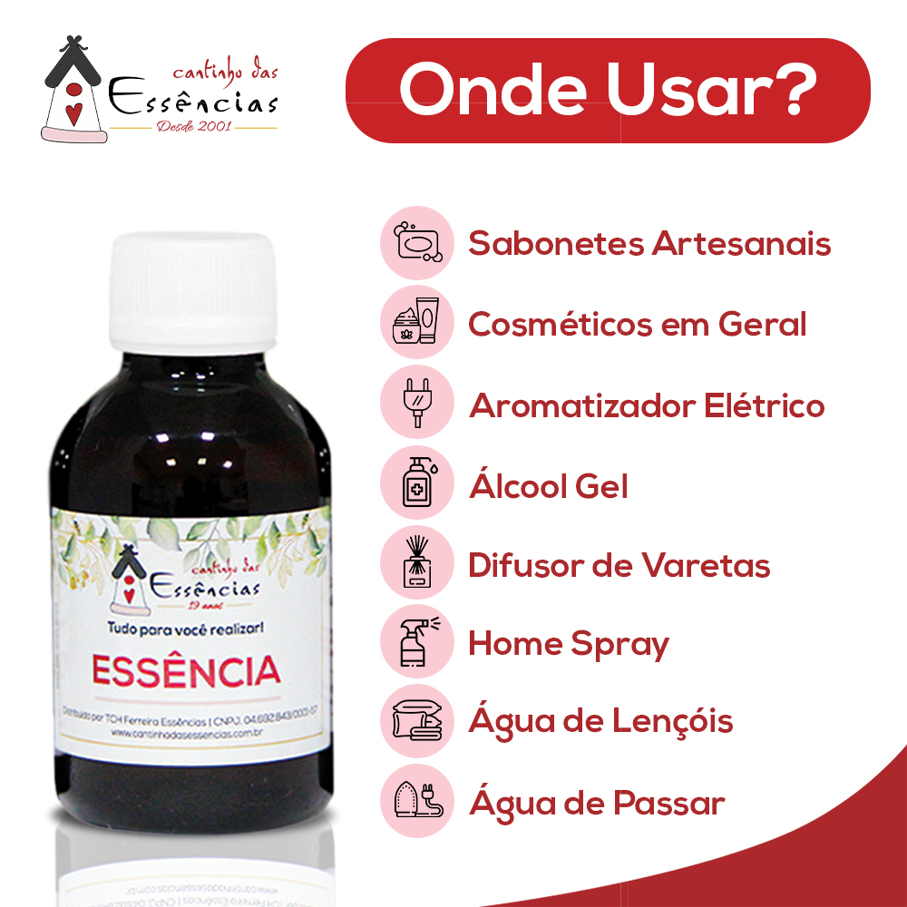 A essência de Maracujá é para quem gosta de aromas frutais, tem o aroma igual ao da fruta . As fragrâncias do Cantinho das Essências, foram desenvolvidas por indústrias multinacionais e nacionais de grande porte. Possuem em sua formulação matérias primas naturais e sintéticas, proporcionando um melhor resultado na aplicação e fixação. As matérias primas são importadas, garantindo assim qualidade superior das essências. INDICAÇÃO E UTILIZAÇÃO: Nossas essências são especialmente desenvolvidas para a fabricação de: aromatizador de ambiente, difusor, água para lençois, sachês perfumados. Sabonetes, cremes hidratantes, sabonete líquido, óleos e sais de banho, e cosméticos em geral Pode ser também utilizada em aromatizadores elétricos, rechaud ou umidificadores SUGESTÕES DE USO: Sabonete em barra: 20g à 40g para cada 1kg Sabonete líquido: 10g para cada 1L Creme hidratante: 20g à 40g para cada 1kg Aromatizador de ambientes de varetas: 20g para cada 100ml de álcool Água para lençois: 20g para cada 1L Aromatizadores elétricos, rechaud ou umidificadores: 5 a 15 gotas CUIDADOS Armazenar em sua embalagem original fechada, em local seco, fresco e ventilado. Manter a temperatura ambiente (15 a 30°C) e protegida da luz solar. Não ingerir. Manter fora do alcance de crianças e animais.