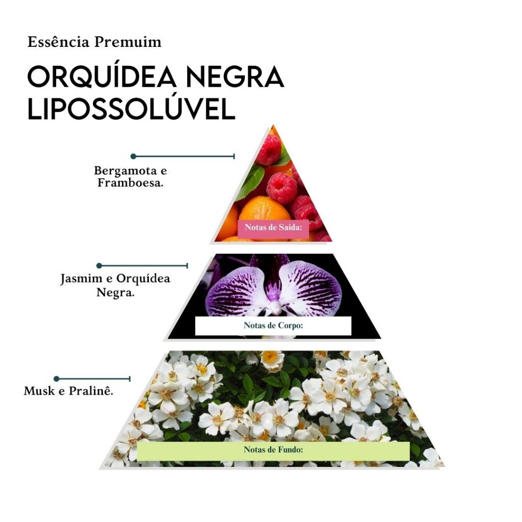 Essência de Orquídea Negra Glamour, sofisticação e sensualidade Uma fragrância floral frutal que une frescor e elegância. A saída combina bergamota e framboesa, trazendo luminosidade. No coração, jasmim e orquídea negra formam uma fusão floral intensa e envolvente. O fundo de musk e pralinê finaliza com toque cremoso e sensual. Família Olfativa: Floral Frutal Notas Olfativas: Saída: Bergamota, Framboesa Corpo: Jasmim, Orquídea Negra Fundo: Musk, Pralinê Uso Recomendado: Velas perfumadas Sabonetes líquidos (transparentes ou perolados) Difusores e sprays de ambiente Destaques: Qualidade premium: sem ftalatos, sem parabenos, não testada em animais Frascos âmbar para conservação do aroma Dosagem recomendada: 10g a 15g para cada 100g de cera Cuidados: Armazenar em local seco, fresco e longe da luz Realizar testes prévios, principalmente em cold process Usar luvas; evitar contato com olhos e pele Manter fora do alcance de crianças e animais Especificações Técnicas Ponto de Fulgor: 79°C Densidade: 1,0277 g/cm³ Importante: Essências com notas adocicadas podem oxidar e alterar a cor do produto final. Para evitar, utilize corantes adequados e mantenha a embalagem protegida da luz. Realize testes prévios para assegurar o desempenho esperado na aplicação desejada. Não aceitamos devoluções de essências com lacre violado Aviso Importante: A Loja Casinha das Essências s é exclusivamente uma revendedora de matérias-primas e insumos para fabricação artesanal. Não nos responsabilizamos por resultados insatisfatórios decorrentes de uso inadequado, manipulação incorreta ou falta de conhecimento técnico. É de responsabilidade do cliente buscar informações detalhadas sobre os materiais antes da compra, assim como realizar testes prévios em pequena escala antes de produções em maior volume. Reforçamos que cada material pode apresentar comportamentos diferentes de acordo com a técnica utilizada, as condições do ambiente e os demais ingredientes da formulação. O sucesso na aplicação depende diretamente da experiência, testes e práticas adotadas por cada cliente. Por que Comprar na Casinha das Essências? Confiança e Qualidade: Produtos desenvolvidos com rigor para oferecer o melhor para seus cuidados pessoais. Entrega Rápida: Receba seus produtos com agilidade, sem comprometer a qualidade. Atendimento Especializado: Nossa equipe está disponível para esclarecer dúvidas e fornecer suporte completo. Preço Competitivo: Excelência e qualidade com preços justos para você. A Casinha das Essências é a escolha certa para quem busca qualidade e inspiração! Adicione ao carrinho agora e comece a criar com materiais que fazem a diferença! Observações Importantes: Realize sempre testes para assegurar o desempenho esperado na aplicação desejada. Não nos responsabilizamos por uso inadequado ou fora das orientações fornecidas. O produto faz parte do grupo Hemera Beauty Ltda, que inclui Tudo Para Velas Ind Com Imp e Exp LTDA e Casinha das Essências LTDA. As especificações podem variar conforme lotes e regulamentações. A embalagem pode sofrer alterações sem aviso prévio, mas o conteúdo permanece inalterado.