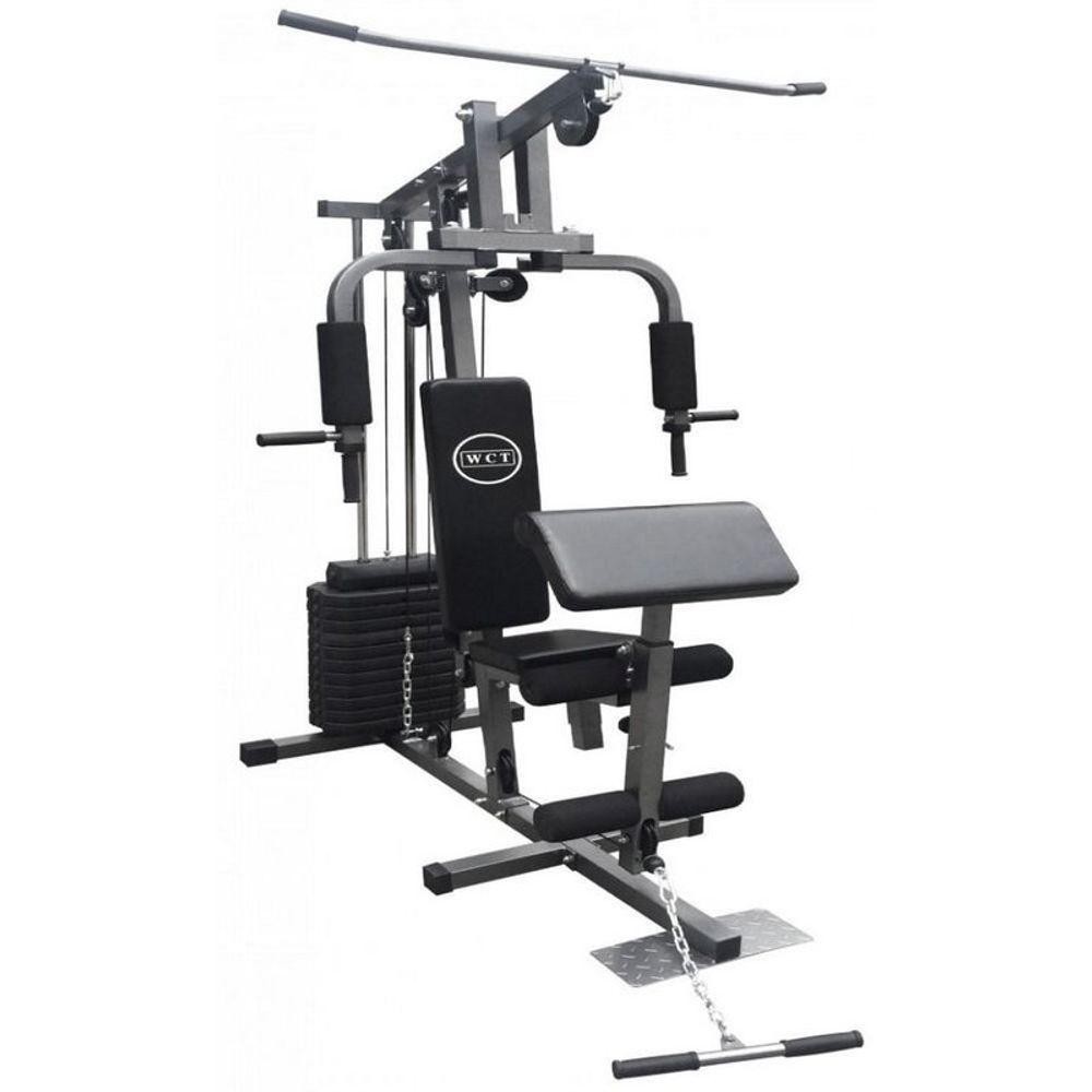 Estação De Musculação 80kg 001 AEstação de Musculação 80kg WCT. O celhor custo beneficio do mercado. Equipamento de musculação ideal para exercícios de circuito, ganho de massa muscular e tonificação. Exercita e tonifica os músculos das pernas, coxas, glúteos, braços, bíceps, tríceps, peitoral, costas, ombro e muitas outras variações com o peso de até 80kg. Podendo alternar entre exercícios de supino, peck deck,fly, trapézio, bíceps, tríceps e muitas mutras variações de exercícios. Seu sistema de cabos reforçados, aço tubularsuper resistente. Permite fazer vários tipos de exercícios com mais precisão e força no conforto da sua residência ou academia. Melhora a postura do corpo, auxiliar na perda de peso, aumenta a densidade óssea e melhora o condicionamento cardiorrespiratório.