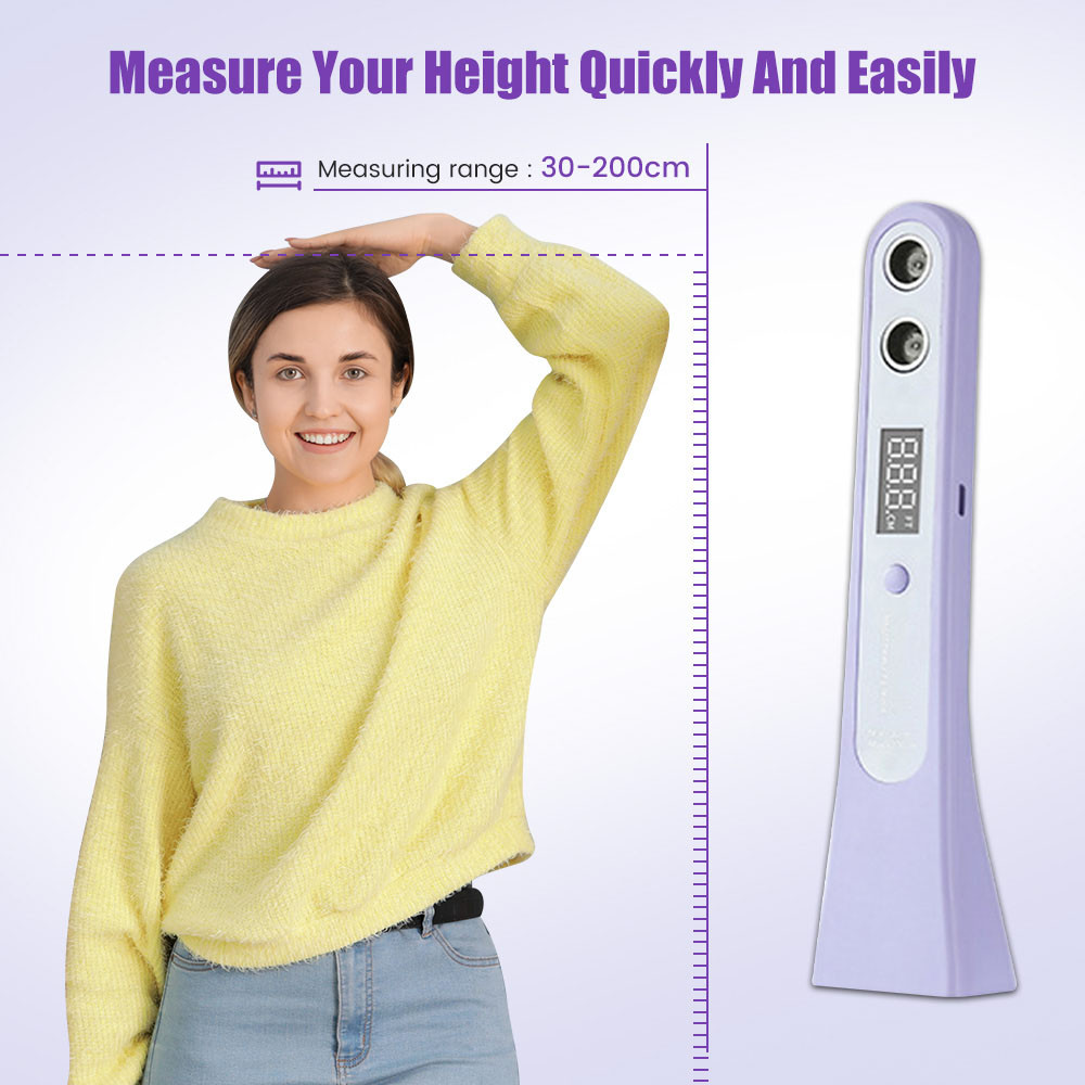 Loja Salorie Nota: Esta máquina usa sensores ultrassônicos para medição. Você deve ficar diretamente sob o sensor para evitar resultados imprecisos. Durante a medição, você deve pisar antes de pressionar o botão de medição, caso contrário a máquina emitirá um tom de erro. Observe: 1. Não deve haver saia sob o canto ao medir, caso contrário, o valor será impreciso 2. Medida de onda acústica, então você precisa ficar lá para medir Descrição do produto Medição de altura portátil em 1 segundo - Alcança medidas rápidas em apenas 1 segundo - Alcançar ondas sonoras para leituras de altura precisas. Aproveite a simplicidade da operação com um clique. Equipado com um Display LCD de alta definição - Apresentando um display LCD de alta definição com um releitura em tempo real da temperatura, garantindo uma medição de altura de legibilidade sem esforço para resultados de parede Buzzer Prompt Equipado - Cada operação de medição de altura para parede receberá uma resposta instantânea da campainha embutida, aumentando a interação do usuário. O estadiômetro de máquina ultrassom portátil é lindo e é uma boa escolha para decoração de parede do quarto Decoração de berçário e berçário Modo de Usar: Pressione o dispositivo de medição de altura perto da parte superior da cabeça com o perpendicular inferior da parede. Pressione o botão de medição de altura próximo ao topo da cabeça com o fundo perpendicular à parede. Pressione o botão de medição após caminhar.