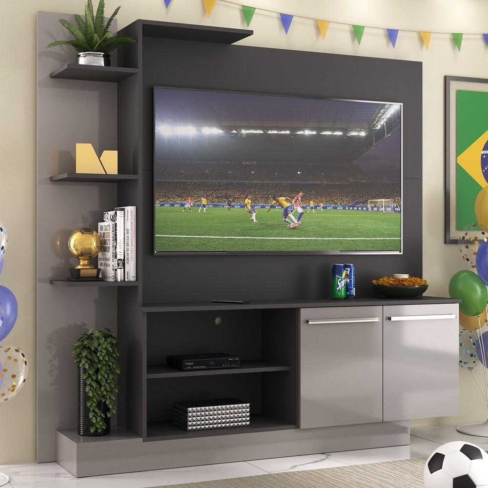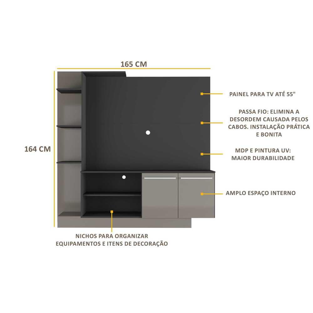Estante com Painel TV 55" e 2 portas França Multimóveis BR2473 Preto/Lacca Fumê