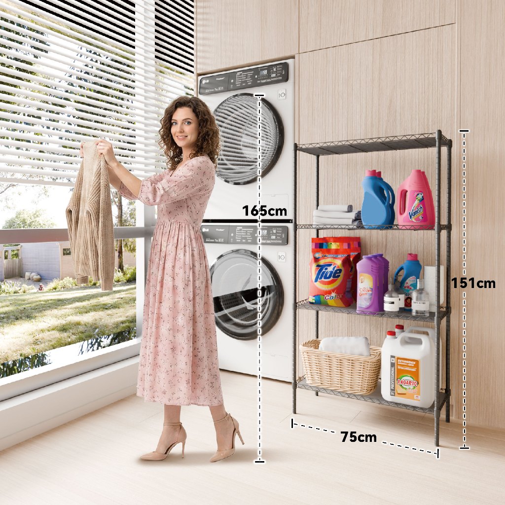 📦 Descrição do Produto Estante de aço: A estante de metal com 4 prateleiras ajustáveis é uma solução prática para organização de ambientes domésticos. Estrutura compacta, resistente e fácil de montar, ideal para espaços reduzidos. ⭐ Destaques do Produto ✔ Estrutura estável com quatro colunas Sistema de quatro colunas de suporte, garantindo maior estabilidade no uso diário. Não balança com objetos comuns, ideal para organização doméstica. ✔ Altura das prateleiras ajustável Postes com design modular tipo “segmentado”, permitindo ajustar a altura das prateleiras conforme o tamanho dos objetos. Aproveita melhor o espaço interno, sem desperdício. 👉 Ajuste em intervalos de aproximadamente 1 polegada (≈2,5 cm). ✔ Itens pequenos não caem Cestos de metal com bordas elevadas e placas de PVC inclusas, evitando que objetos pequenos caiam pelos espaços. Perfeito para temperos, produtos de limpeza e itens menores. ✔ Estável mesmo em pisos irregulares Pés com ajuste giratório, facilitando o nivelamento em pisos desnivelados. Ideal para varandas, cozinhas antigas e apartamentos, mantendo a estante firme e segura. 🔧 Características Técnicas Tipo: Estante / Prateleira de armazenamento Material: Metal (ferro) Acabamento: Preto fosco Quantidade de prateleiras: 4 níveis Altura das prateleiras: Ajustável (sistema modular) Capacidade de carga total: até 200 kg Peso líquido: 7,14 kg 📐 Dimensões Produto montado: 151 × 75 × 35 cm Embalagem: 76 × 36,5 × 15 cm ⚠️ Produto compacto. Recomendado verificar as medidas antes da compra. 🏠 Indicação de Uso Cozinha: utensílios, temperos, pequenos eletrodomésticos Banheiro: produtos de higiene e limpeza Lavanderia / Varanda: organização geral Quarto / Escritório: caixas organizadoras e objetos leves 📦 Conteúdo da embalagem 4 x Coluna Superior 4 x Coluna Inferior 4 x Prateleiras de metal 4 x Painéis de PVC 1 x Kit de parafusos e acessórios 1 x Manual de instruções de instalação ⚠️ Informações Importantes Não indicado para cargas extremamente pesadas ou uso industrial Produto voltado para uso doméstico Montagem simples, média de 10–15 minutos Inclui pés niveladores para pisos irregulares