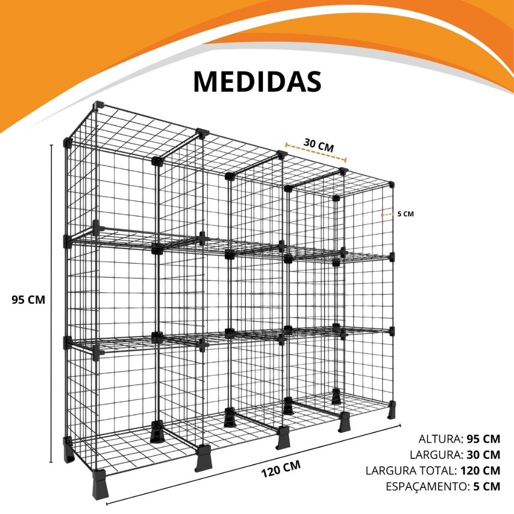 Estante de Aço Aramado Organizadora Multiuso 12 Nichos Casa Loja Estoque Roupas Brinquedos Promoção