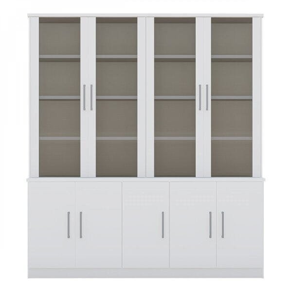 Estante de Livros 9 Portas e Portas Superiores Vidro Fumê Branco