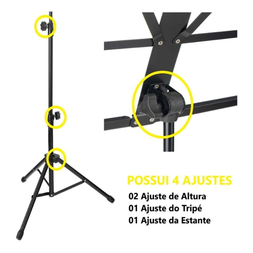 Destaques que fazem a diferença! 😎 - Dobrável e portátil: leveza e praticidade para seu dia a dia musical. - Pés antiderrapantes: estabilidade garantida em qualquer superfície. - Acompanha bolsa para transporte: leve sua estante para onde quiser com total segurança. Opções de Quantidade Escolha a versão que melhor atende à sua necessidade: disponível em versão individual (1 unidade) ou dupla (2 unidades). Detalhes do Produto Ideal para músicos que buscam praticidade e estabilidade durante o estudo ou apresentações. A estante dobrável possui regulagem de altura, tornando-se perfeita para diferentes ambientes. O suporte telescópico com molas mantém as partituras seguras e firmes, enquanto os pés emborrachados garantem resistência e não danificam superfícies. Conforto e Versatilidade A estrutura em ferro ou aço proporciona durabilidade, e o design dobrável facilita o armazenamento e transporte. Leve e confortável, essa estante é a escolha certa para quem valoriza praticidade e segurança na hora de tocar ou estudar música!