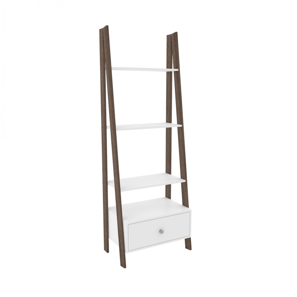 Estante Escada 4 Prateleiras 1 Gaveta Branco/Rústico
