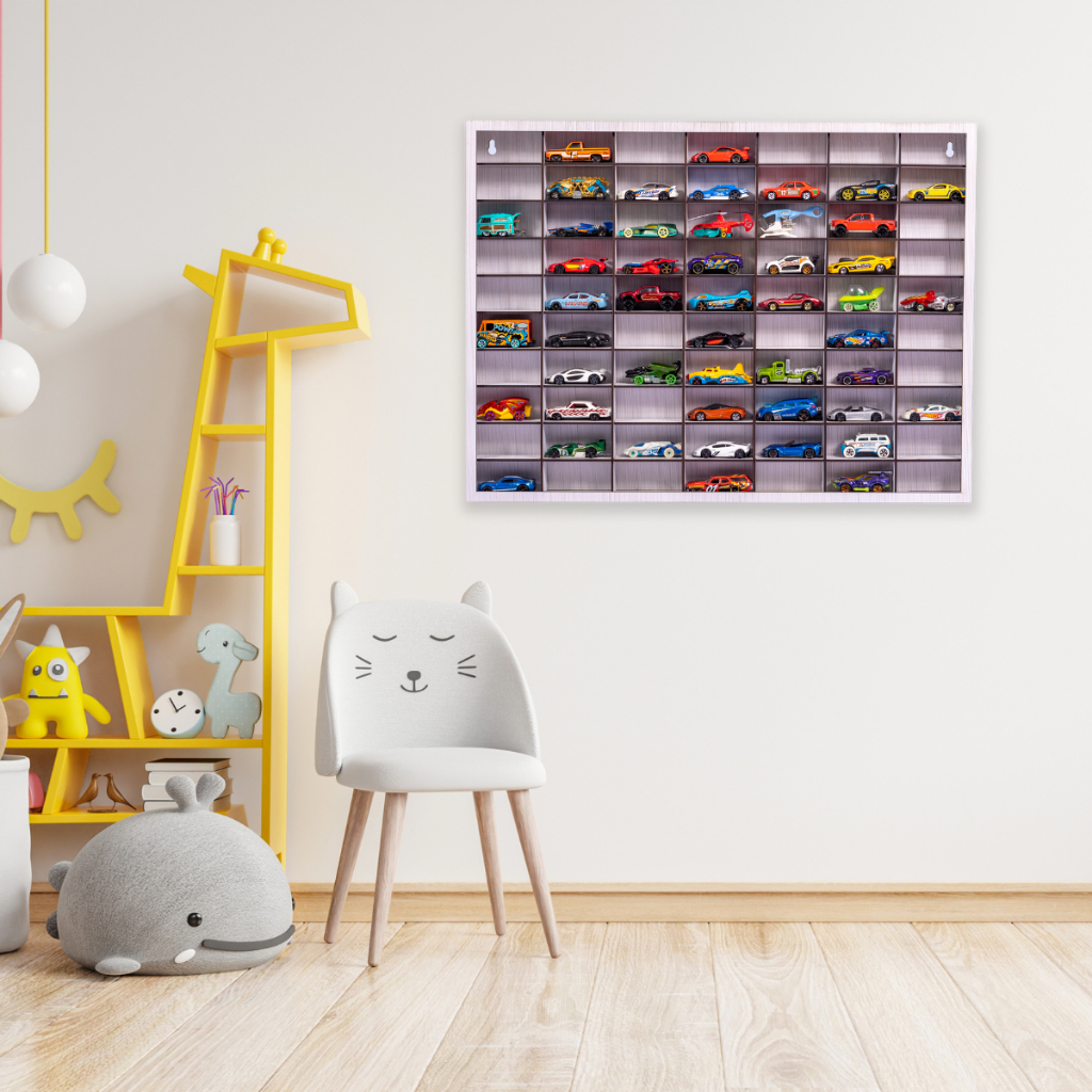 Com o nosso Expositor para Carrinhos em Miniatura, você deixará sua coleção ainda mais linda e organizada! Com acabamento a laser e capacidade para 70 carrinhos, o expositor é uma solução prática para organizar todos os carrinhos em um só lugar. CARACTERÍSTICAS: - Cor: Branco; - Feito com MDF cru 6 mm (estrutura) e 2,8 mm (nichos internos); - Produto é enviado montado; - Possui um furo em cada canto, na parte de trás da peça; - Não acompanha parafusos, vidro ou acrílico; - Os nichos não são colados na estrutura; - Capacidade para 70 carrinhos, Hot Wheels ou semelhantes. - Recomendado o uso de vidro ou acrílico de 3 mm de espessura. MEDIDAS: - Estrutura: 60 de largura cm x 45 de altura cm x 5 cm de profundidade. - Nichos: 8,5 de largura cm x 4,5 de altura cm x 4 cm de profundidade. OBSERVAÇÕES: - A tonalidade do produto pode variar de acordo com a resolução da tela; - Os objetos que ambientam as fotos não acompanham o produto; - Cuidados especiais: não deixar em contato direto com a água, limpar somente com um pano levemente umedecido; - Caso tenha algum problema após a sua compra, conte com a nossa equipe de pós-venda para solucionar com a maior agilidade! GARANTIA: - Garantia de 7 dias contra defeito de fabricação; - Executar a conferência no ato do recebimento. A Decorti está presente no mercado de MDF artesanal desde 2015. Somos uma empresa que presa pela qualidade, inovação e respeito pelos seus clientes. Entregamos produtos de valor e confiança, visando sempre a alta qualidade no resultado final. Usamos os melhores materiais encontrados no mercado. Qualidade e satisfação garantidas!