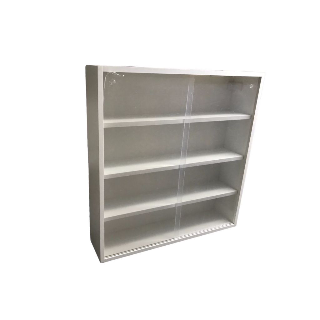 Estante Expositora em mdf branco com portas em acrílico 66x69x15