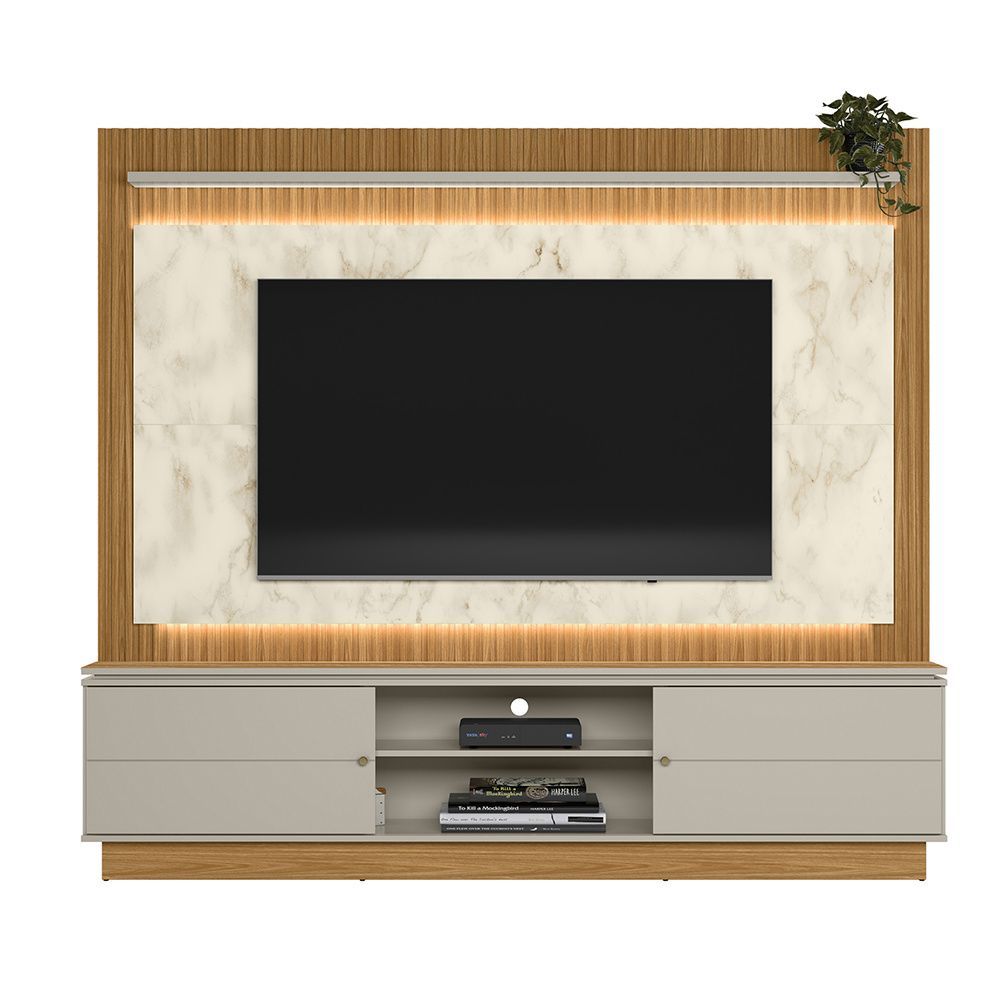O Home Guararapes é perfeito para você que busca sofisticação para a sua sala. Para TV de até 75 polegadas, conta com duas portas de correr com detalhes de frisos e dois puxadores de alumínio, duas prateleiras para dispor objetos decorativos e ainda tampo com detalhes chanfrado. O painel ripado com fitas de led deixa a sua sala ainda mais atraente. Modelo: Guararapes Marca: Linea Brasil Portas: 2 Nichos: 4 Tampo: Chanfrado (mdf 18 mm) Porta: De correr com detalhe frisado Painel: Flex - No momento da montagem é possível escolher qual cor deseja Prateleira de: 25mm Material: MDP de alta resistência Acabamento: Pintura UV texturizada Compatibilidade: TVs de até 75 polegadas Iluminação: Fita de LED embutida Peso suportado no tampo: Até 40 kg Sistema de montagem: Minifix e cavilhas Dimensões do produto: Altura: 191 cm Largura: 215 cm Profundidade: 38 cm Peso: 91,7 kg Garantia: 3 meses