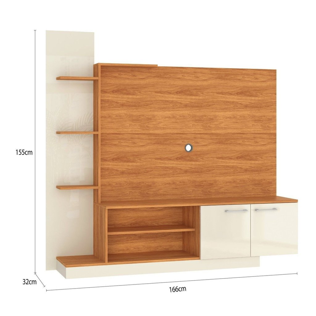Transforme sua sala de estar em um centro de entretenimento e convívio com a Estante Home Havana. Com um design que equilibra beleza e funcionalidade, este móvel foi projetado para organizar seu espaço com elegância, tornando seus momentos de lazer ainda mais aconchegantes. - Design Moderno e Elegante: O acabamento nas cores Cinamomo e Off White, combinado com linhas retas, confere um visual contemporâneo e sofisticado, que se adapta facilmente a diferentes estilos de decoração. - Amplo Espaço de Organização: Conta com 5 prateleiras para exibir seus objetos decorativos, 2 nichos ideais para aparelhos eletrônicos e 2 portas para armazenar itens de forma discreta, mantendo tudo no lugar. - Painel Integrado para TV: Projetado para suportar televisores de até 55 polegadas, o painel integrado possui passa-fios, que ajuda a esconder os cabos e a manter a aparência limpa e organizada. - Dimensões Ideais para sua Sala: Com 155 cm de altura, 166 cm de largura e 32 cm de profundidade, a estante oferece uma presença marcante sem comprometer a circulação, otimizando o espaço do seu ambiente. - Acabamento de Alta Qualidade: A estrutura recebe uma pintura UV de última geração, que protege o móvel contra riscos e desgastes, garantindo maior durabilidade e um acabamento impecável por mais tempo. Acompanha 1 estante home e kit de ferragens para montagem. Para uma compra certeira: Os itens decorativos das imagens não fazem parte do produto. Confirme se as medidas cabem no seu ambiente, considerando uma pequena folga de até 2 cm para manuseio. Estilo: Moderno Peso (kg): 34.8 Garantia: 03 Meses Altura (cm): 155 Acabamento: Pintura UV Largura (cm): 166 Possui Pés: Rodapé Possui Vidro: Não Possui Nichos: 2 Possui Portas: Sim Tipo de Porta: Abrir Possui Gavetas: Não Possui Rodízio: Não Suporta Até (kg): 20 Possui Espelhos: Não Profundidade (cm): 32 Escala de Brilho: Semi-Brilho Material dos Pés: MDP Acompanha Lâmpada: Não Fixação na Parede: Não Material da Porta: MDP Origem do Produto: Nacional Possui Iluminação: Não Ambiente Principal: Sala de Estar Espessura do Tampo (mm): 12 Material Principal: MDP Possui Passa Cabos: Sim Possui Prateleiras: Sim Acabamento da Porta: Pintura UV Espessura do Painel: 12 Sapatas Niveladoras: Não Material da Prateleira: MDP Acabamento da Prateleira: Pintura UV Painel para TV Integrado: Sim Tipo de Puxador da Porta: Externo Escala de Brilho da Porta: Semi-Brilho Peso Máximo por Prateleira: 1 Ideal para TVs até (Polegadas): 55 Material do Puxador da Porta: Plástico Escala de Brilho da Prateleira: Semi-Brilho Informações Complementares (Novo): Para TV até 55" Suporte de TV Universal Incluso: Não Tipo de Dobradiça/Corrediça da Porta: Metálica Marca: Fellicci Cor Interna: Cinamomo Cor: Cinamomo/Off White Cor do Produto: Cinamomo/Off White Itens Inclusos: 1 Estante Home, Kit Ferragens e Manual de Montagem Cor Predominante: Bege Linha ou Coleção: Havana Quantidade de Prateleiras: 05 Prateleiras Quantidade de Portas: 2 Portas