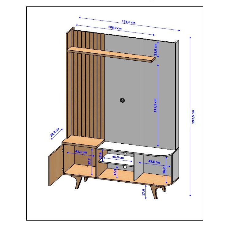 Se você busca sofisticação e funcionalidade para a sua sala, este home é a escolha perfeita. Com uma estrutura resistente em MDP de 15cm, ele garante durabilidade e estabilidade, enquanto sua prateleira superior e tampo esquerdo, produzidos em MDP de 25cm, proporcionam ainda mais robustez e segurança para os seus eletrônicos e itens decorativos. O painel frisado e a porta frisada, confeccionados em MDF de 15cm, agregam um toque de elegância e modernidade ao ambiente, tornando o espaço mais aconchegante e estiloso. Com um design refinado e acabamento impecável, este home valoriza sua decoração e oferece praticidade para o dia a dia. Adquira agora e transforme sua sala em um ambiente ainda mais sofisticado! Peso (kg): 45.7 Garantia: 03 Meses Altura (cm): 192.5 Acabamento: Pintura Texturizada UV Largura (cm): 136 Possui Pés: Sim Possui Vidro: Não Possui Nichos: 4 Possui Gavetas: Não Possui Rodízio: Não Suporta Até (kg): 50 Possui Espelhos: Não Profundidade (cm): 38 Escala de Brilho: Semi-Brilho Material dos Pés: Madeira Maciça Material da Porta: MDP Possui Iluminação: Não Ambiente Principal: Sala de Estar Espessura do Tampo (mm): 15 Material Principal: MDP Possui Passa Cabos: Sim Acabamento da Porta: Pintura Texturizada UV Espessura do Painel: 15 Sapatas Niveladoras: Não Material da Prateleira: MDP Acabamento da Prateleira: Pintura UV Painel para TV Integrado: Não Tipo de Puxador da Porta: Não Possui Escala de Brilho da Porta: Semi-Brilho Peso Máximo por Prateleira: 7 Ideal para TVs até (Polegadas): 55 Escala de Brilho da Prateleira: Fosco Suporte de TV Universal Incluso: Não Marca: Móveis Bechara Cor: Naturalle/Off White Cor do Produto: Naturalle/Off-White Itens Inclusos: 1 Home +1 Manual de Montagem Cor Predominante: Marrom