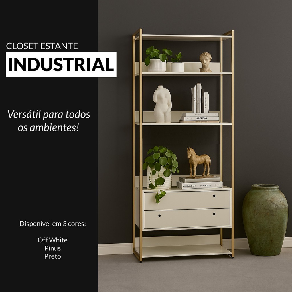 Estante Modulado Closet Industrial 2 Gavetas 5 Prateleiras Off White - Olivar Móveis