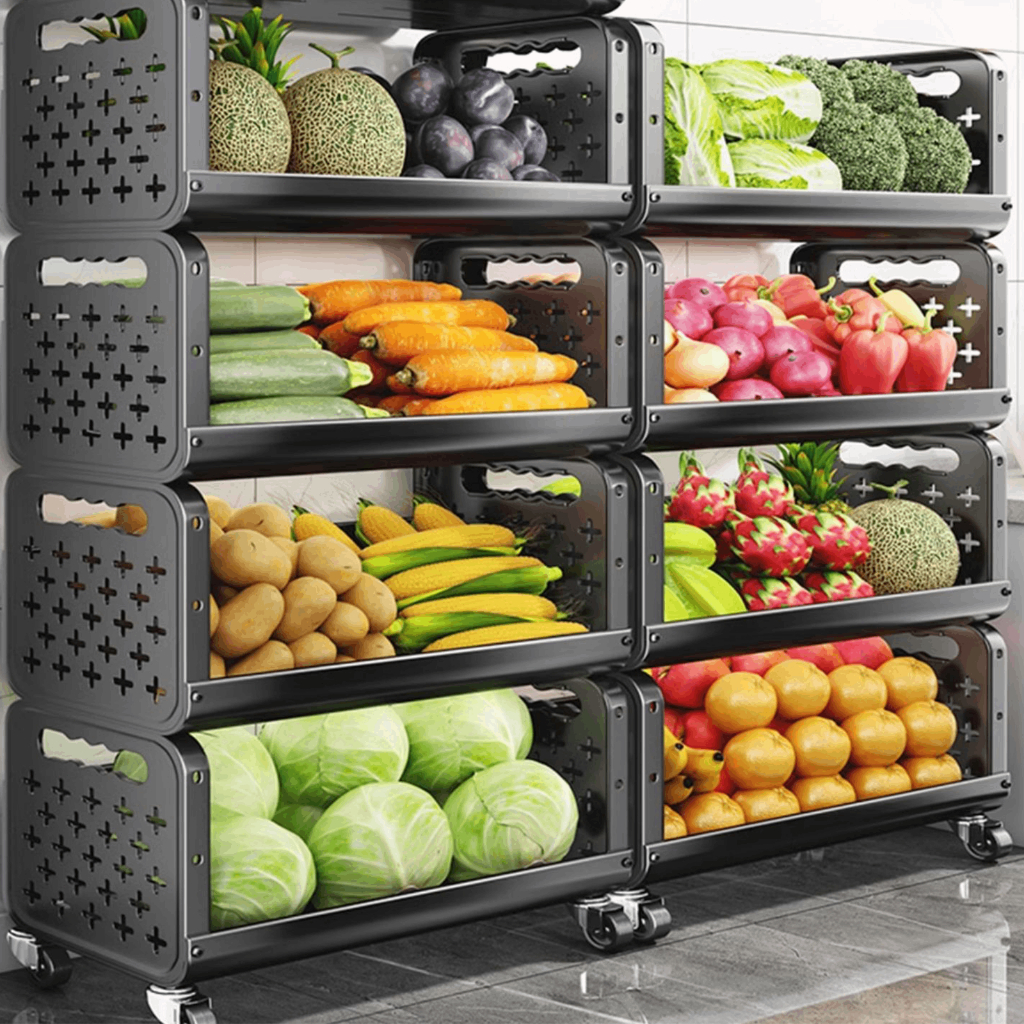 Estante multifuncional de armazenamento e exposição, destinada para cozinhas e banheiros,3 ou 4 prateleiras