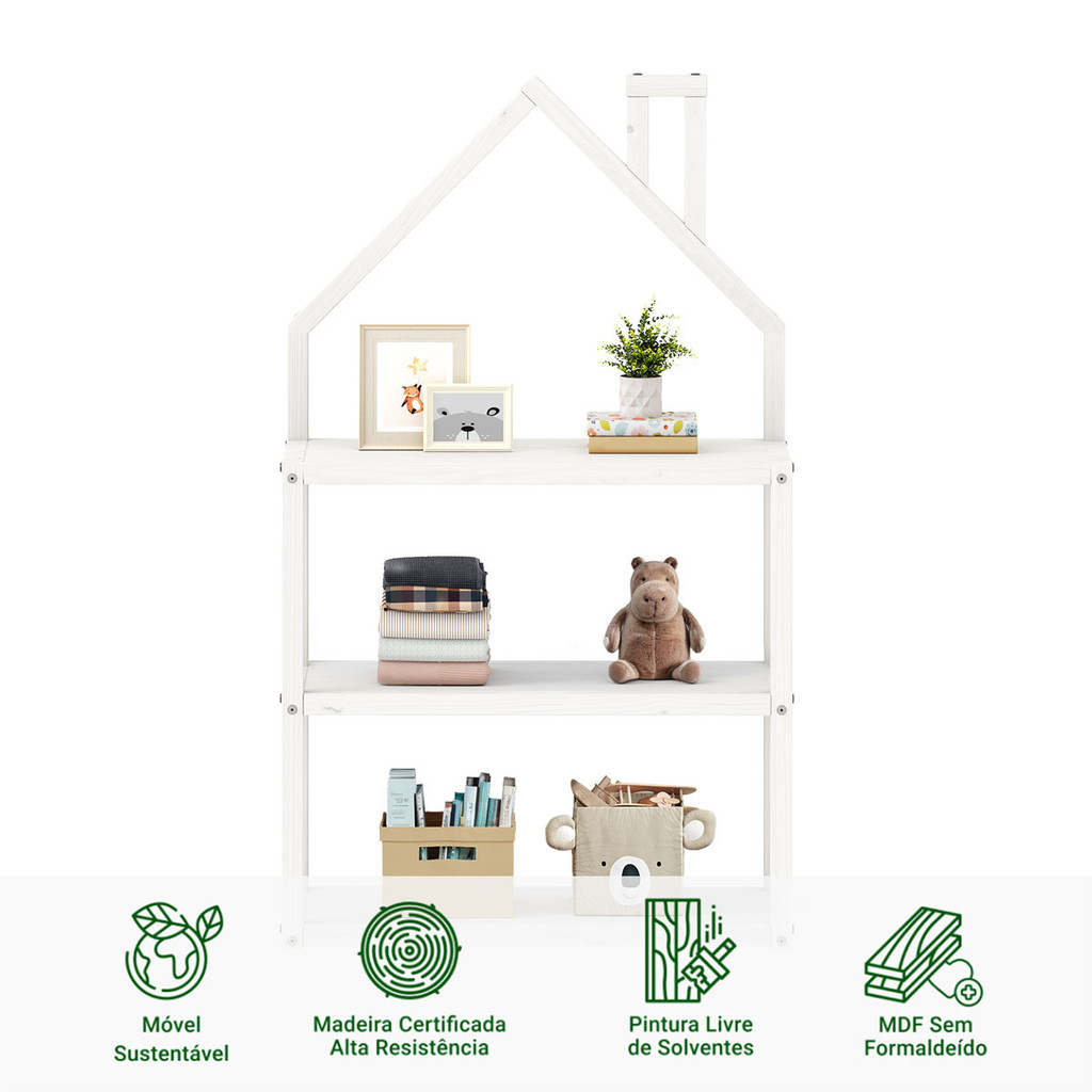 Estante Multiuso Infantil Branco 3 Prateleiras Madeira Montessori Lenise
