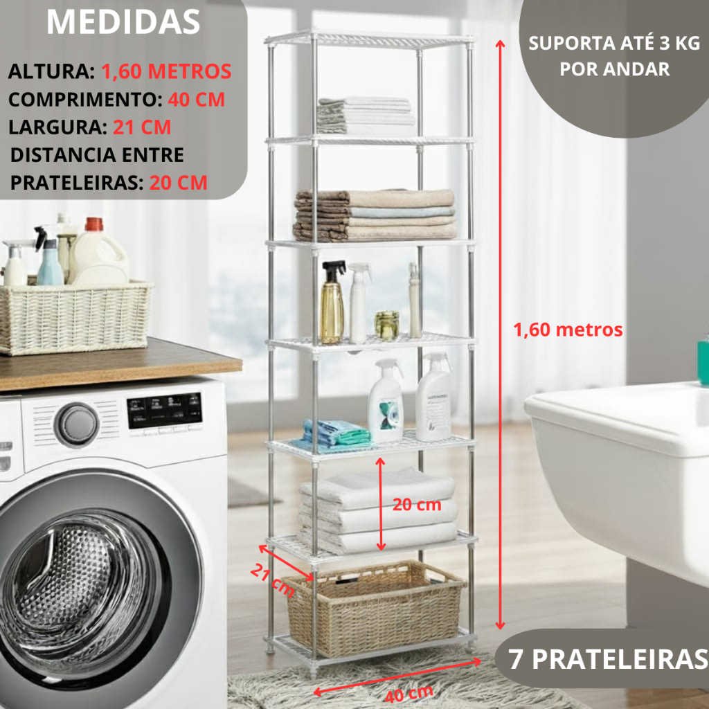 | Estante Multiuso Modular 7 Andares Organizador Em Aço Reforçado este produto | R$ 42,36 | 27% | 4.8/5 | 41 |