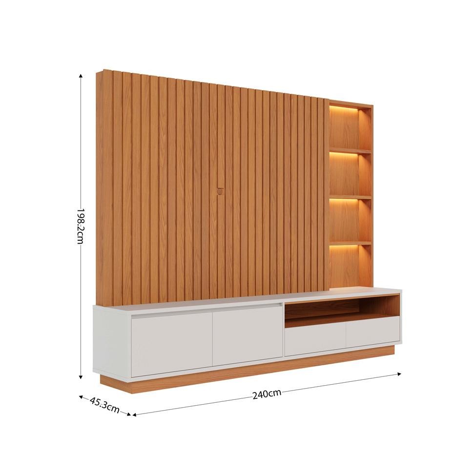 Estante para Home Theater e TV até 82 Polegadas Cancun com LED 4 Gavetas Freijó e Off White