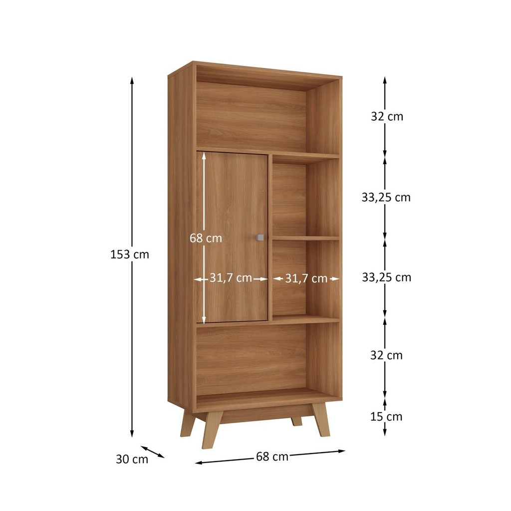 Estante para Livros 1 Porta 3 Prateleiras Pequim Nogal
