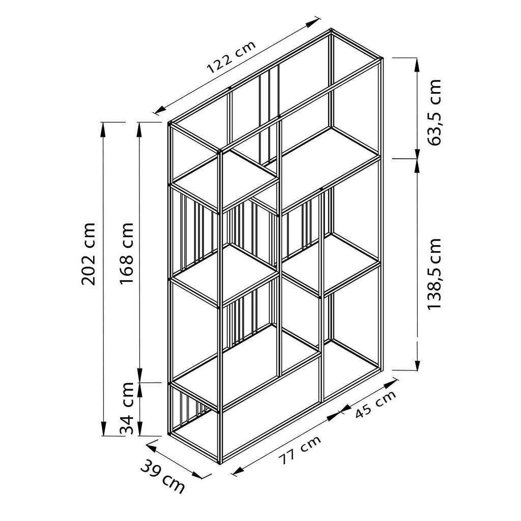 Estante para Livros 5 Prateleiras 202cmx122cm Málaga Yescasa Preto/Noce Oro