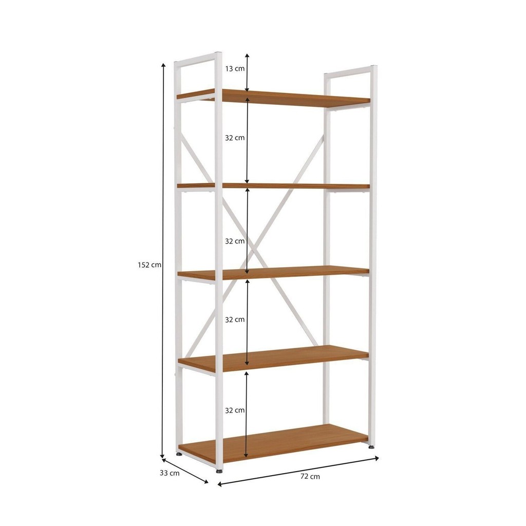 Estante para Livros Alta 5 Prateleiras 150cm X 72cm Industrial Canela/Branco Brilho
