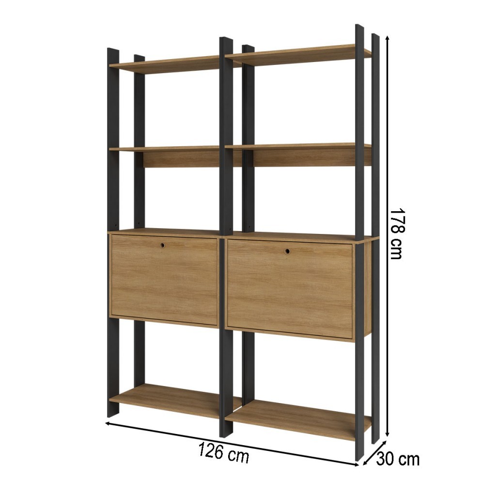Dimensões: - Altura: 178,00 cm - Largura: 126,00 cm - Profundidade: 30,00 cm - Peso: 33,700 kg Descrição: O(a) Estante para Livros Barcelos 2 Portas 6 Prateleiras Mel/Preto - Pnr Móveis é produzido em MDP na escala de brilho Fosco, e possui um grau de dificuldade de montagem: Médio.Seu revestimento/acabamento é: Chapa FF. Infelizmente a Loja não oferece serviço de montagem, deixamos essa informação bem clara em todas as nossas páginas de produto. Onde especificamos que os móveis chegarão desmontados, e que a montagem fica por conta do cliente. Como não oferecemos esse serviço não embutimos o mesmo no preço dos produtos, ou seja, maior economia para você! Todos os nossos móveis também acompanham o manual de montagem, e caso você queira, pode realizar a montagem você mesmo, sempre especificamos os graus de montagem dos produtos. Nos casos de grau baixo e médio, com pouco ou nenhum conhecimento, você mesmo pode efetuar a montagem, e fazer essa economia. Apenas nos graus de montagem alto, recomendamos a contratação de um montador com experiência, visto que são montagens mais complicadas. A montagem é feita com Parafusos, cavilhas e Minifix.. Este móvel é indicado para que seja utilizado no(a) Sala de Estar e Escritório, dando um toque especial no cômodo de sua casa. Para que você mantenha seu produto sempre em ótimo estado, recomendamos que use apenas um pano seco ou levemente umedecido, sem o uso de quaisquer produtos abrasivos. A Loja garante aos clientes, 90 dias de garantia nos produtos, porém, recomendamos que entre em contato com o fornecedor/marca do produto, pois o mesmo(a), pode garantir um prazo maior de garantia. Lembrando ainda que: quaisquer objetos decorativos que aparecem nas imagens, não acompanham o produto. Características: - Espessura da Estrutura: 12mm - Possui Gavetas?: Não - Possui Portas?: Sim - Quantidade de Portas: 2 - Material da Porta: MDP - Espessura da Porta: 12 mm - Tipo de Porta: Portas Basculantes - Material das Dobradiças: Articulador - Possui Vidro?: Não - Possui Espelho?: Não - Possui Prateleiras?: Sim - Quantidade de Prateleiras: 6 - Peso Suportado nas Prateleiras:: 6 Kg - Possui Puxadores?: Sim - Material do Puxador: Plástico - Possui Ripamento?: Não - Linha ou Coleção: Barcelos - Montagem Invertida?: Não Pode ser Montado Invertido - É frágil?: Não - Possui Nicho?: Não - Material da Estrutura: MDP - Escala de Brilho: Fosco - Possui Rodízios?: Não - Possui Pés?: Não - Possui Vidro: Não - Tamanho Unico Grande Pequeno: Único - Acompanha: Estante para Livros, kit ferragens e manual de montagem. - Acompanha Manual de Montagem: Sim - Como os Móveis Chegarão na Minha Casa: Desmontado em caixas, acompanhado de todas as peças, ferragens e manuais para montagem. - Grau de Dificuldade da Montagem: Médio - Necessita de Montagem: Sim - Sistema de Montagem: Parafusos, cavilhas e Minifix. - Garantia (dias): 90 - Indicação de Uso: Sala de Estar e Escritório - Observação: Este produto é vendido em 2 Volumes embalados em caixa de papelão com isopor nas laterais e revestidos com plásticos termoencolhivel. Não expor o móvel a fontes de calor ou de umidade. As imagens indicam uma sugestão de uso e são apenas ilustrativas, os objetos decorativos não estão inclusos. Não expor o móvel a fontes de calor ou de umidade. As imagens indicam uma sugestão de uso e são apenas ilustrativas, os objetos decorativos não estão inclusos. - Recomendação de Manutenção: Limpar utilizando apenas pano umedecido com água, nunca utilizar abrasivos ou esponjas de aço. - Revestimento /Acabamento: Chapa FF