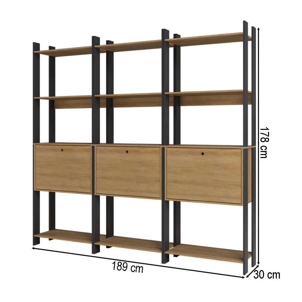 Estante para Livros Barcelos 3 Portas 9 Prateleiras Mel/Preto - Pnr Móveis