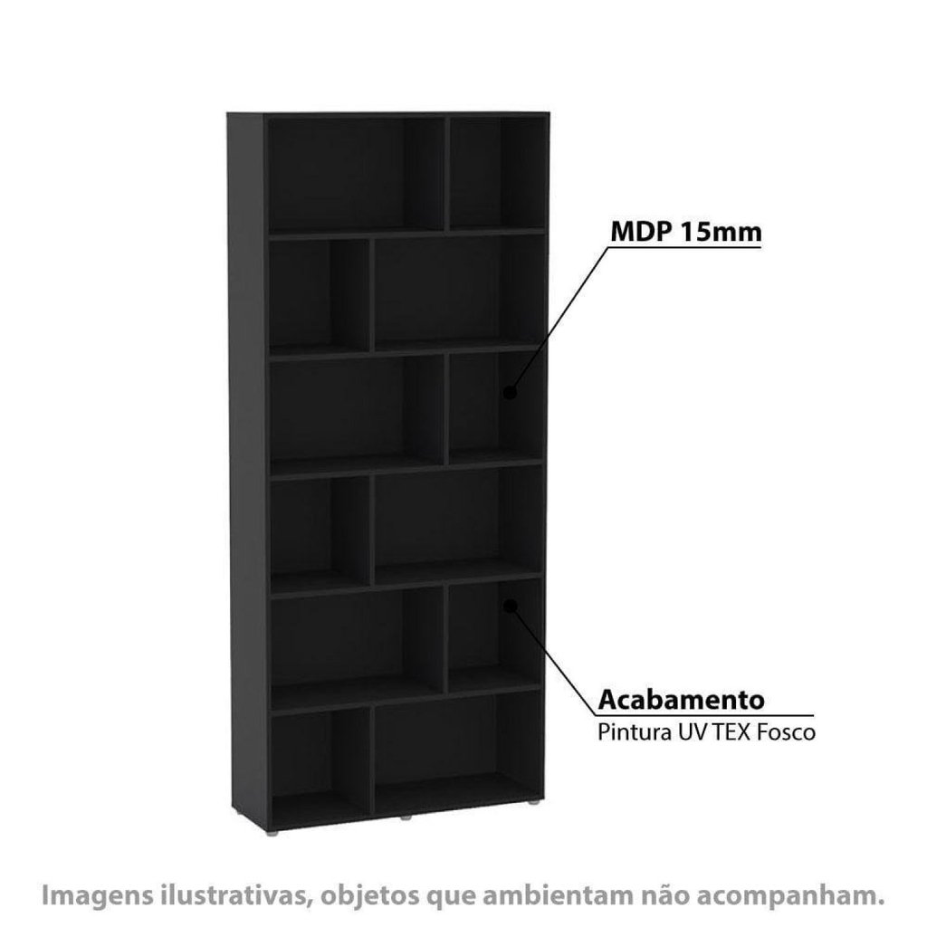 Estante para Livros com 12 Nichos Xangai 204cmx90cm Preto
