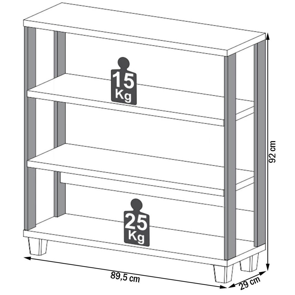 Dimensões: - Altura: 92,00 cm - Largura: 89,50 cm - Profundidade: 29,00 cm - Peso: 16,300 kg Descrição: O(a) Estante para Livros Industrial 2 Prateleiras 100% Mdf Freijó/Preto Fosco F23 - Pradel é produzido em 100% MDF na escala de brilho Brilho e Fosco, e possui um grau de dificuldade de montagem: Médio. Seu revestimento/acabamento é: Pintura UV. Infelizmente a Loja não oferece serviço de montagem, deixamos essa informação bem clara em todas as nossas páginas de produto. Onde especificamos que os móveis chegarão desmontados, e que a montagem fica por conta do cliente. Como não oferecemos esse serviço não embutimos o mesmo no preço dos produtos, ou seja, maior economia para você! Todos os nossos móveis também acompanham o manual de montagem, e caso você queira, pode realizar a montagem você mesmo, sempre especificamos os graus de montagem dos produtos. Nos casos de grau baixo e médio, com pouco ou nenhum conhecimento, você mesmo pode efetuar a montagem, e fazer essa economia. Apenas nos graus de montagem alto, recomendamos a contratação de um montador com experiência, visto que são montagens mais complicadas. A montagem é feita com Minifix, Parafusos.. Este móvel é indicado para que seja utilizado no(a) Sala de Estar e Escritório, dando um toque especial no cômodo de sua casa. Para que você mantenha seu produto sempre em ótimo estado, recomendamos que use apenas um pano seco ou levemente umedecido, sem o uso de quaisquer produtos abrasivos. A Loja garante aos clientes, 90 dias de garantia nos produtos, porém, recomendamos que entre em contato com o fornecedor/marca do produto, pois o mesmo(a), pode garantir um prazo maior de garantia. Lembrando ainda que: quaisquer objetos decorativos que aparecem nas imagens, não acompanham o produto. Características: - Espessura da Estrutura: 25mm - Possui Gavetas?: Não - Possui Portas?: Não - Possui Vidro?: Não - Possui Espelho?: Não - Possui Prateleiras?: Sim - Quantidade de Prateleiras: 2 - Peso Suportado nas Prateleiras:: 5 Kg - Possui Puxadores?: Não - Possui Ripamento?: Não - Linha ou Coleção: Industrial - Montagem Invertida?: Não Pode ser Montado Invertido - É frágil?: Sim - Possui Nicho?: Não - Material da Estrutura: 100% MDF - Escala de Brilho: Brilho e Fosco - Material do Tampo: MDF - Espessura do Tampo (mm): 24 - Possui Rodízios?: Não - Possui Sapatas?: Sim - Possui Pés?: Não - Pés com regulagem de altura?: Não - Quantidade de Pés/Sapatas: 4 - Possui Borda de PVC nas Bordas?: Sim - Possui Espelho: Não - Possui Vidro: Não - Tamanho Unico Grande Pequeno: Único - Acompanha: Uma estante, kit ferragens e manual de montagem. - Acompanha Manual de Montagem: Sim - Como os Móveis Chegarão na Minha Casa: Desmontado em caixas, acompanhado de todas as peças, ferragens e manuais para montagem. - Grau de Dificuldade da Montagem: Médio - Necessita de Montagem: Sim - Sistema de Montagem: Minifix, Parafusos. - Garantia (dias): 90 - Indicação de Uso: Sala de Estar e Escritório - Observação: Objetos decorativos que aparecem nas imagens, não acompanham o produto. - Recomendação de Manutenção: Usar pano seco ou levemente umedecido, não usar quaisquer produtos abrasivos. - Revestimento /Acabamento: Pintura UV