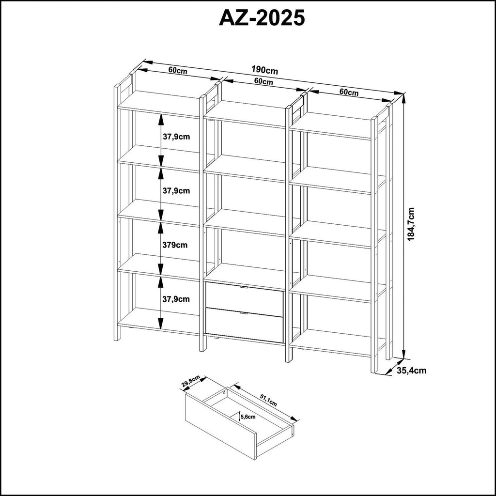 Estante para Livros Multiuso 5 Prateleiras 1,85x1,9m Haia Yescasa Amêndoa/Preto