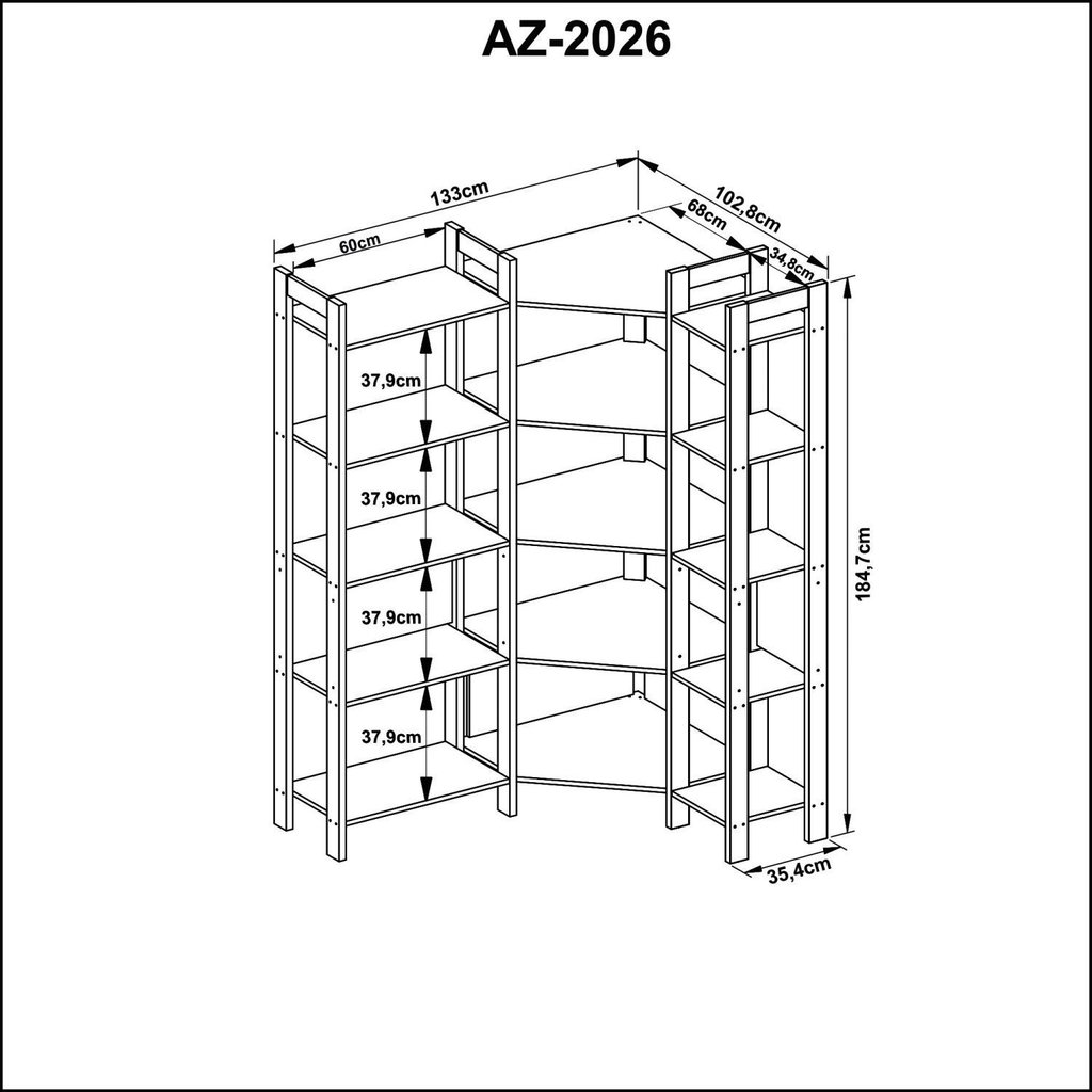 Estante para Livros Multiuso de Canto 1,85x1,33m Haia Yescasa Preto/Branco
