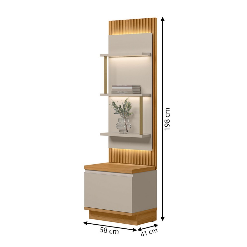 Dimensões: - Altura: 198,00 cm - Largura: 58,00 cm - Profundidade: 41,00 cm - Peso: 31,950 kg Descrição: O(a) Estante para Livros Ouro Preto 1 Porta 3 Prateleiras Ripado Tauari/Off White Fosco - Linea Brasil é produzido em MDF e MDP na escala de brilho Fosco, e possui um grau de dificuldade de montagem: Médio. Seu revestimento/acabamento é: Finish Foil e Pintura UV. Infelizmente a Loja não oferece serviço de montagem, deixamos essa informação bem clara em todas as nossas páginas de produto. Onde especificamos que os móveis chegarão desmontados, e que a montagem fica por conta do cliente. Como não oferecemos esse serviço não embutimos o mesmo no preço dos produtos, ou seja, maior economia para você! Todos os nossos móveis também acompanham o manual de montagem, e caso você queira, pode realizar a montagem você mesmo, sempre especificamos os graus de montagem dos produtos. Nos casos de grau baixo e médio, com pouco ou nenhum conhecimento, você mesmo pode efetuar a montagem, e fazer essa economia. Apenas nos graus de montagem alto, recomendamos a contratação de um montador com experiência, visto que são montagens mais complicadas. A montagem é feita com Parafusos, cavilhas e Minifix.. Este móvel é indicado para que seja utilizado no(a) Sala de Estar e Escritório, dando um toque especial no cômodo de sua casa. Para que você mantenha seu produto sempre em ótimo estado, recomendamos que use apenas um pano seco ou levemente umedecido, sem o uso de quaisquer produtos abrasivos. A Loja garante aos clientes, 90 dias de garantia nos produtos, porém, recomendamos que entre em contato com o fornecedor/marca do produto, pois o mesmo(a), pode garantir um prazo maior de garantia. Lembrando ainda que: quaisquer objetos decorativos que aparecem nas imagens, não acompanham o produto. Características: - Espessura da Estrutura: 37mm, 25mm - Possui Gavetas?: Não - Possui Portas?: Sim - Quantidade de Portas: 1 - Material da Porta: MDP - Espessura da Porta: 15 mm - Tipo de Porta: Portas de Bater - Material das Dobradiças: Metálica - Possui Vidro?: Não - Possui Espelho?: Não - Possui Prateleiras?: Sim - Quantidade de Prateleiras: 3 - Peso Suportado nas Prateleiras:: 3 Kg - Possui Puxadores?: Sim - Material do Puxador: Alumínio - Possui Ripamento?: Sim - Tipo de Ripado: Produzido com Ripas de Madeira, Formando Alto Relevo - Linha ou Coleção: São Paulo - Montagem Invertida?: Não Pode ser Montado Invertido - É frágil?: Não - Possui Nicho?: Não - Material da Estrutura: MDF e MDP - Escala de Brilho: Fosco - Possui Rodízios?: Não - Possui Pés?: Não - Possui Vidro: Não - Tamanho Unico Grande Pequeno: Único - Acompanha: Estante para Livros + Kit Ferragens + Manual de Montagem - Acompanha Manual de Montagem: Sim - Como os Móveis Chegarão na Minha Casa: Desmontado em caixas, acompanhado de todas as peças, ferragens e manuais para montagem. - Grau de Dificuldade da Montagem: Médio - Necessita de Montagem: Sim - Sistema de Montagem: Parafusos, cavilhas e Minifix. - Garantia (dias): 90 - Indicação de Uso: Sala de Estar e Escritório - Observação: Objetos decorativos que aparecem nas imagens, não acompanham o produto. - Recomendação de Manutenção: Utilizar pano levemente umedecido, seguido de pano seco. Não utilizar quaisquer produtos abrasivos. - Revestimento /Acabamento: Finish Foil e Pintura UV